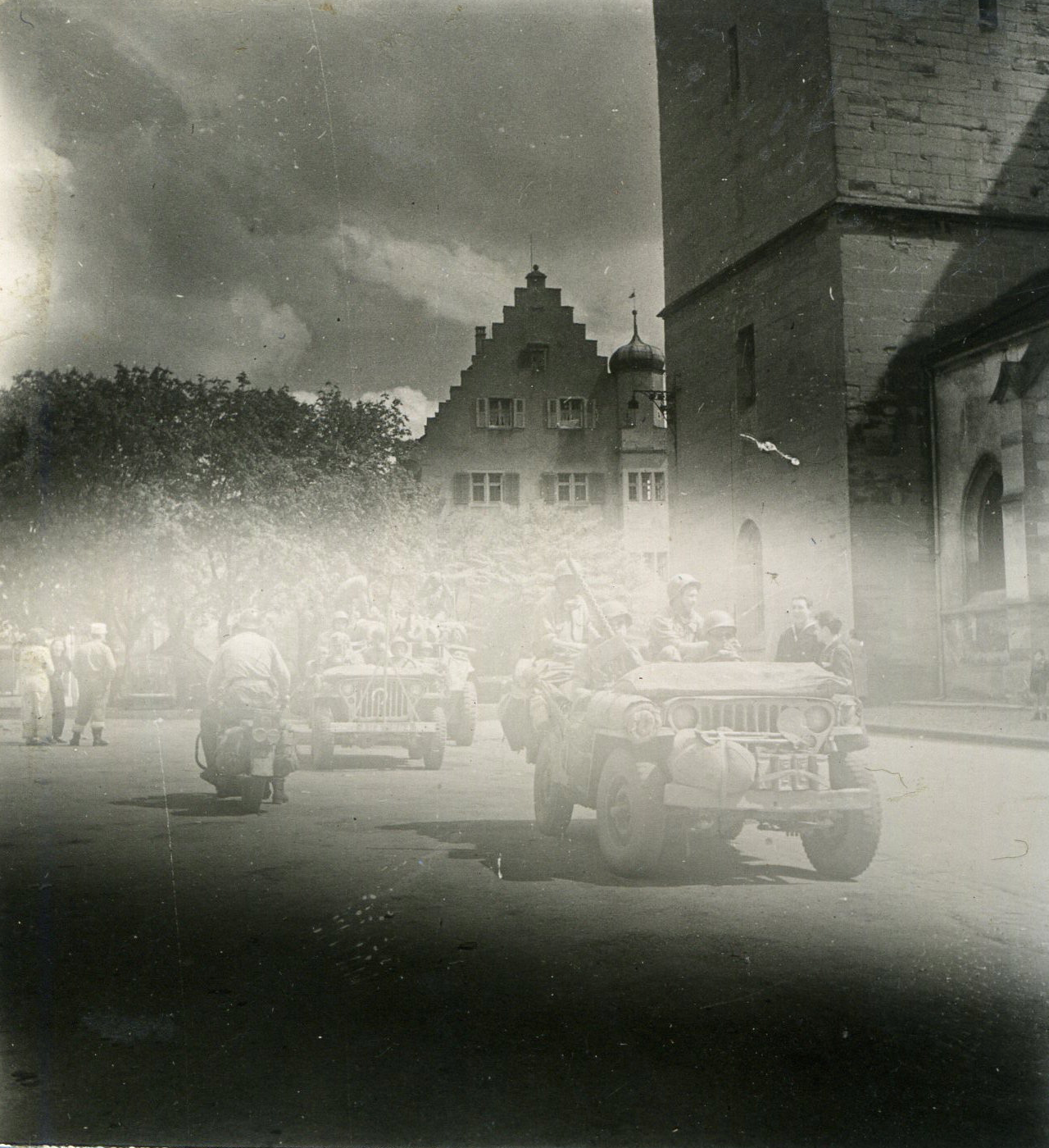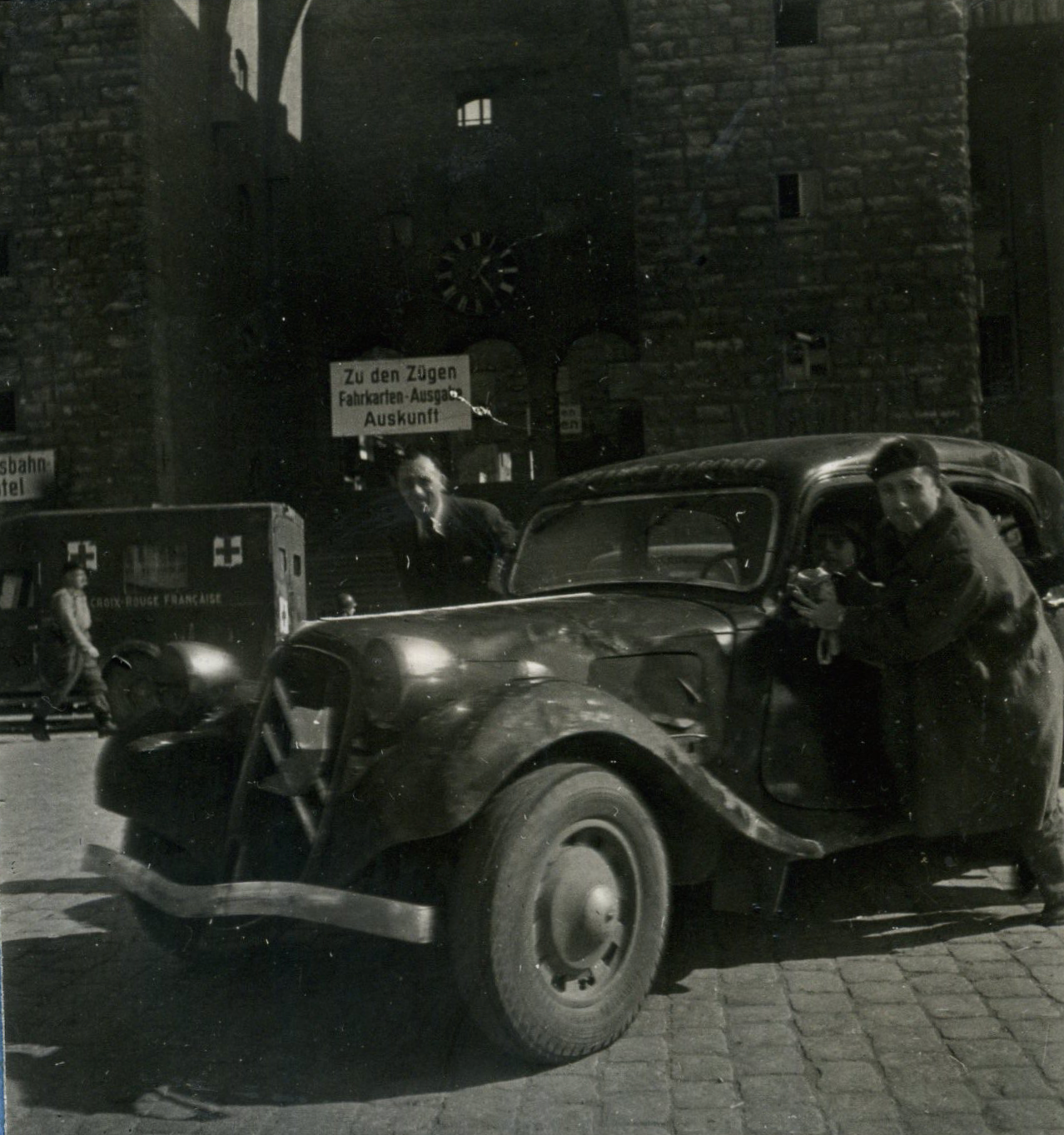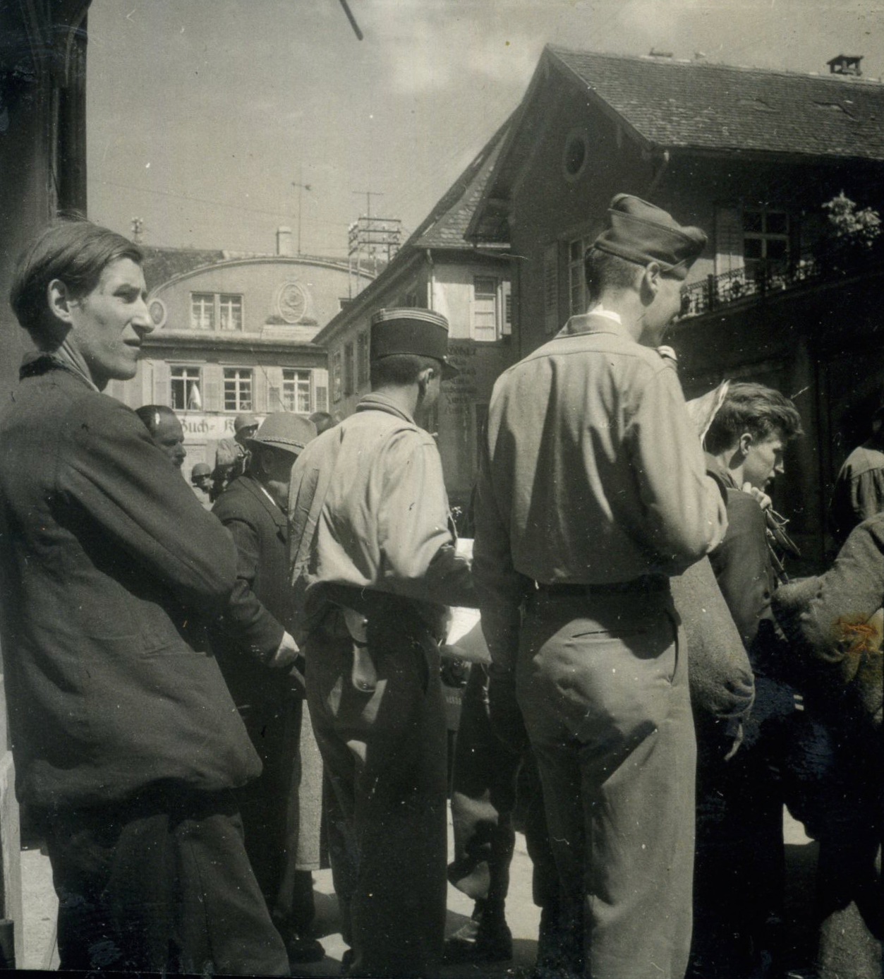 The French First Army crossed the Rhine on 31 March 1945, traveled through the Black Forest and Stuttgart, and reached Bavaria, Munich and Konstanz Lake on VE Day. Pierre was there. His photos reached us as just contact sheets and dark room tests – no negatives, no prints, no notes. I identified their location through research. All additions and corrections welcome.