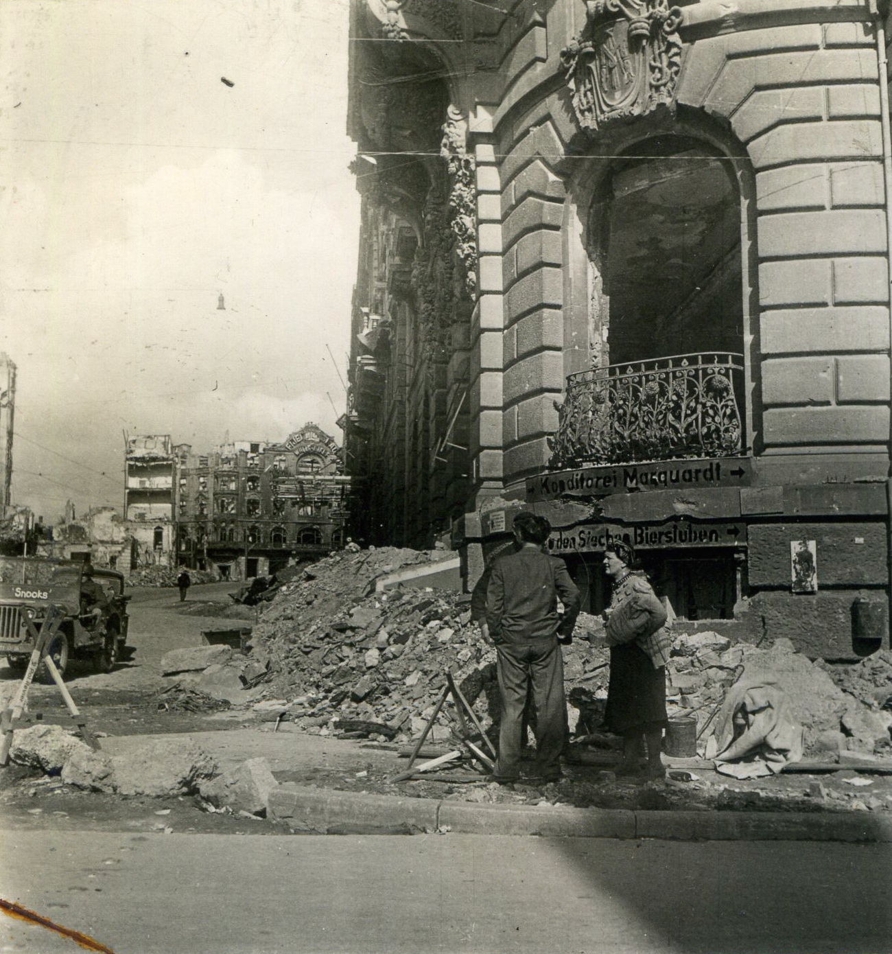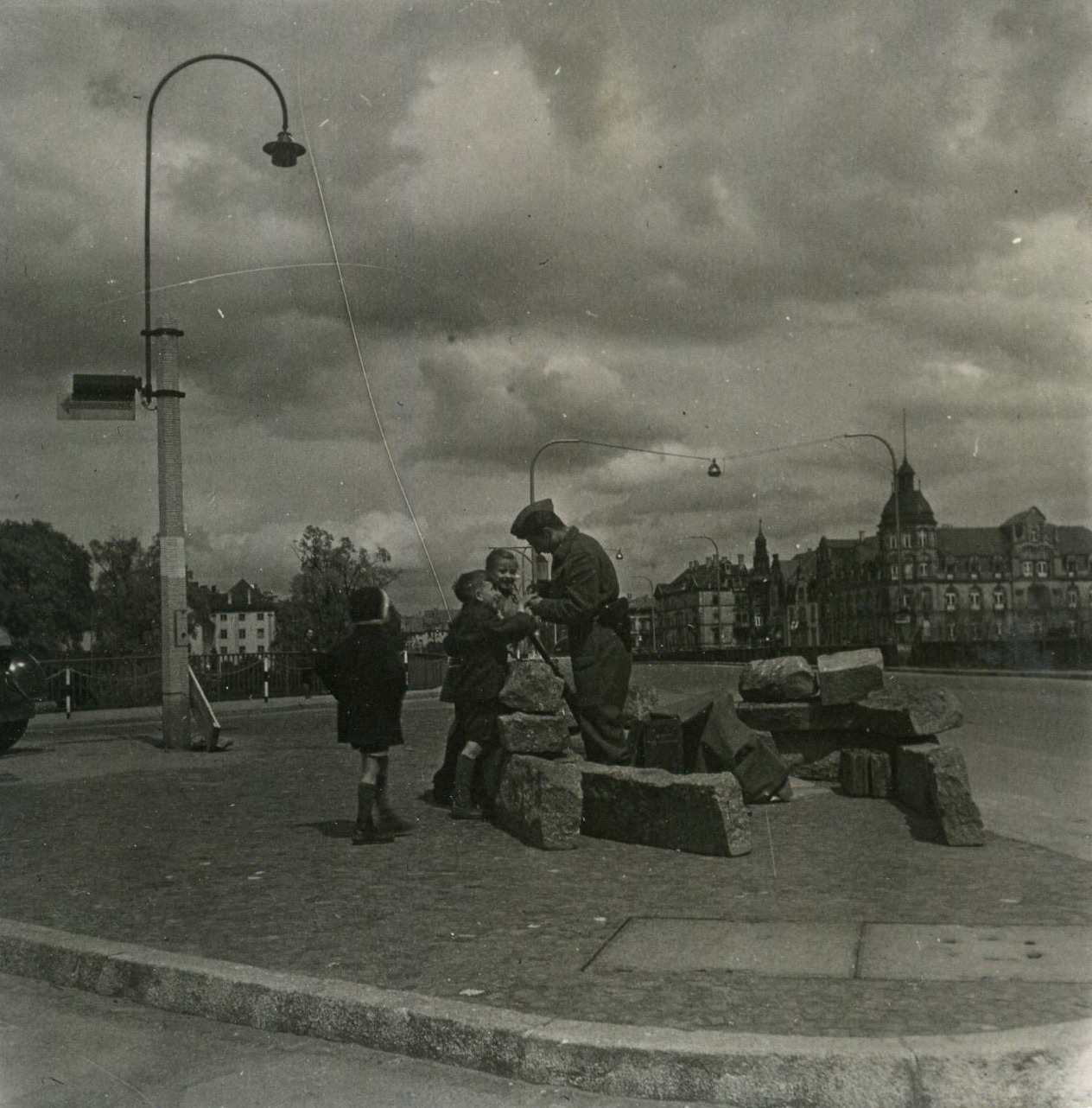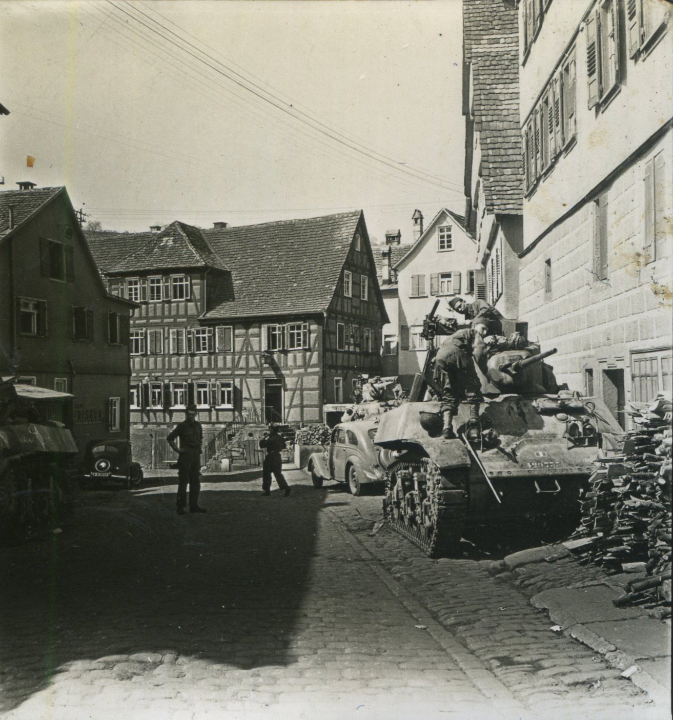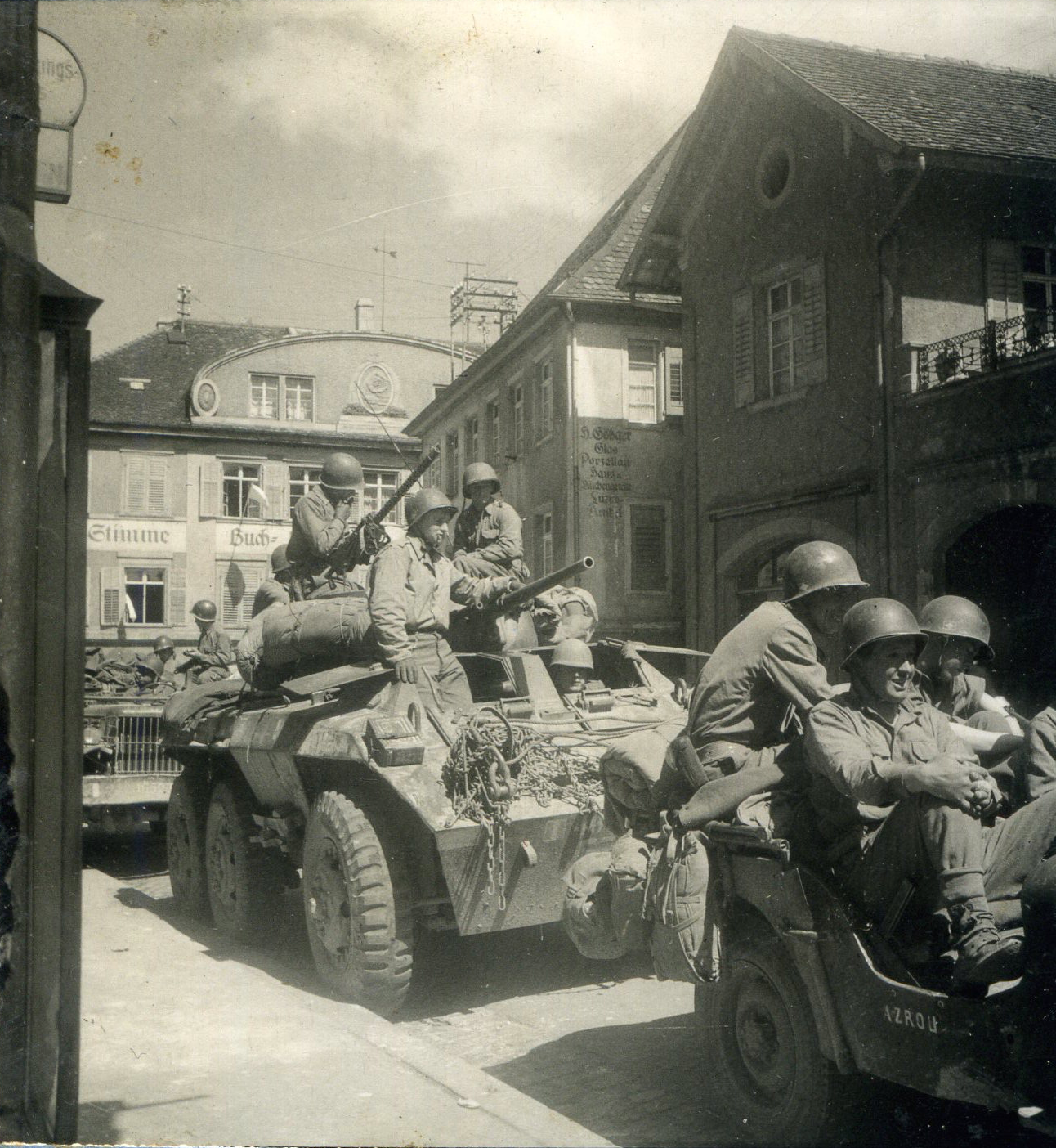 The French First Army crossed the Rhine on 31 March 1945, traveled through the Black Forest and Stuttgart, and reached Bavaria, Munich and Konstanz Lake on VE Day. Pierre was there. His photos reached us as just contact sheets and dark room tests – no negatives, no prints, no notes. I identified their location through research. All additions and corrections welcome.