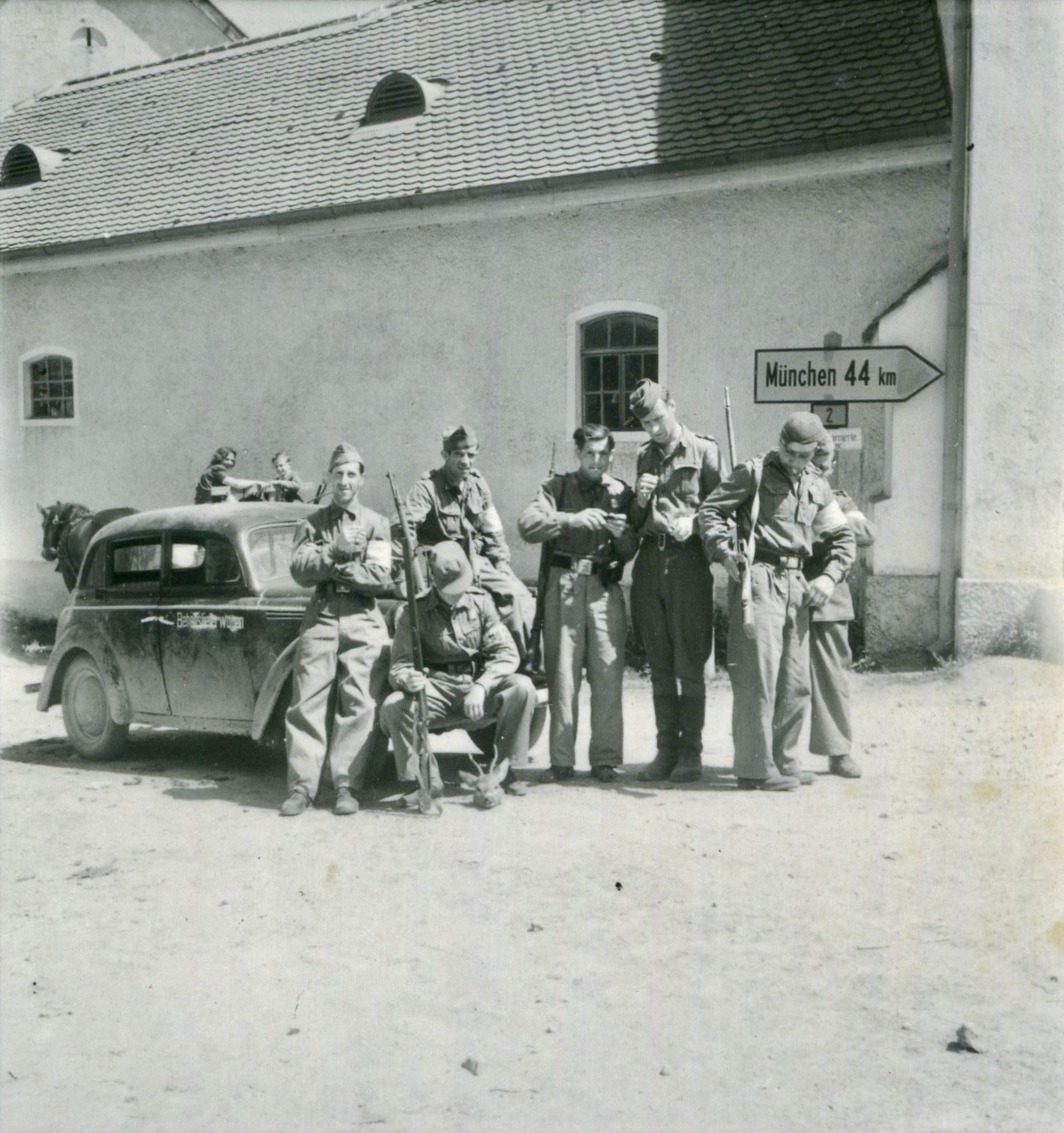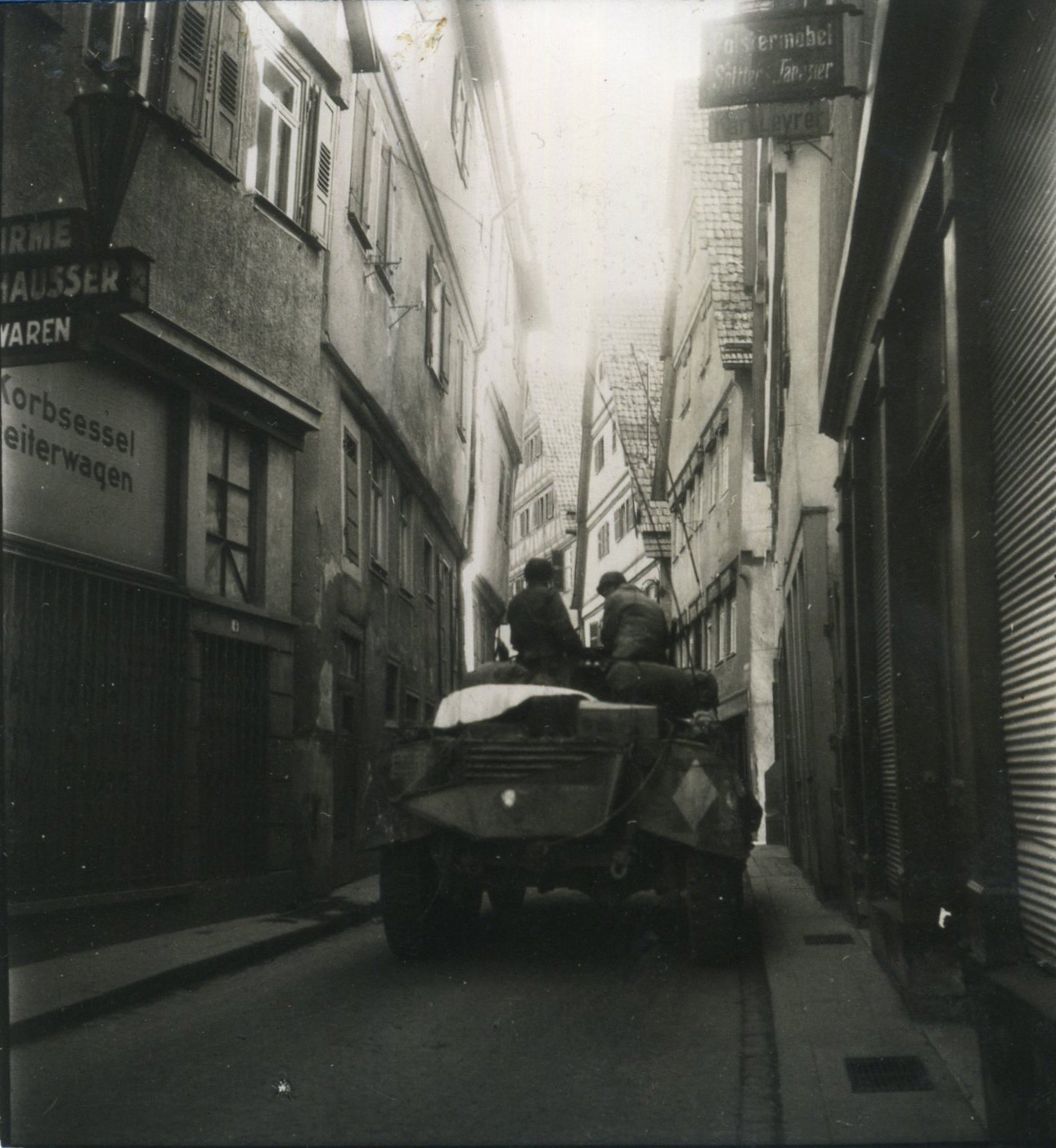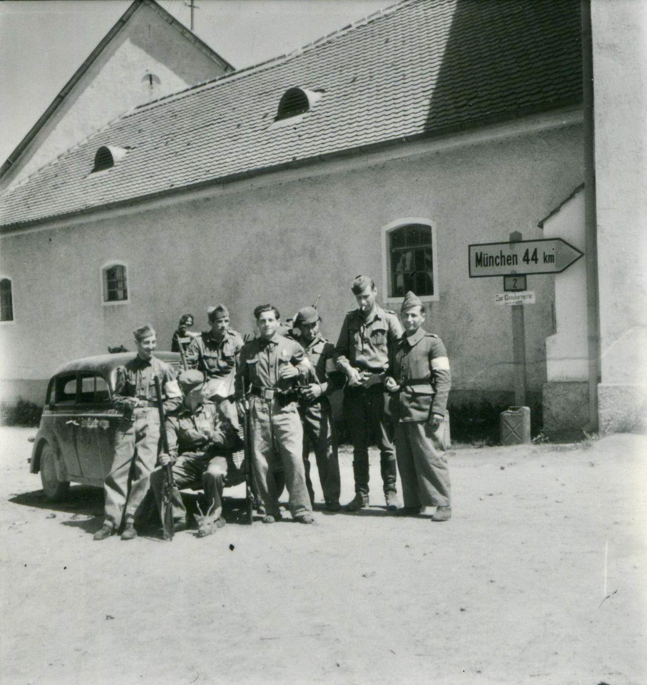 La 1ere armée française traversa le Rhin le 31 mars 1945 avant de parcorurir le sud de l'Allemagne, à travers la Forêt noire, Stuttgart puis la Bavière – Munich et le lac de Constance pour l'armistice. Pierre y était donc. Ses photos ne me sont parvenues que par des planches contacts et essais de chambre noire. Pas de négatifs, de tirages ou de notes. Je les ai identifiées par ma propre recherche; toutes additions et corrections sont les bienvenues.