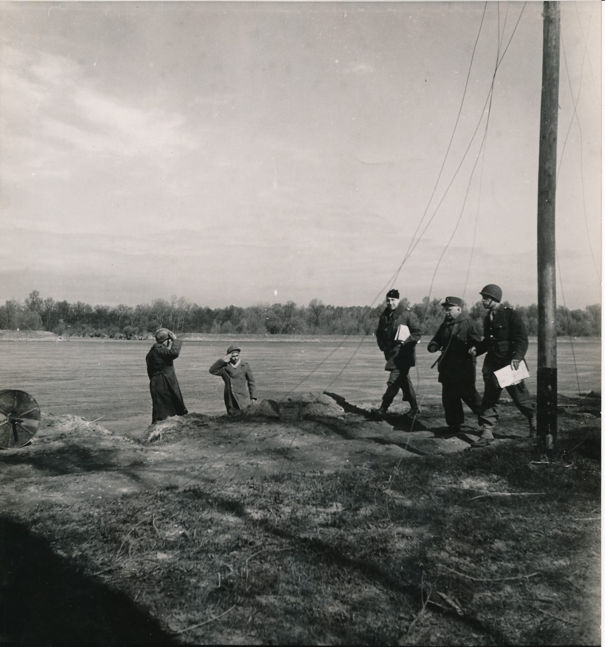 This photo showing General Joseph de Goislard de Monsabert and soldiers apparently laying communication cable was censored.