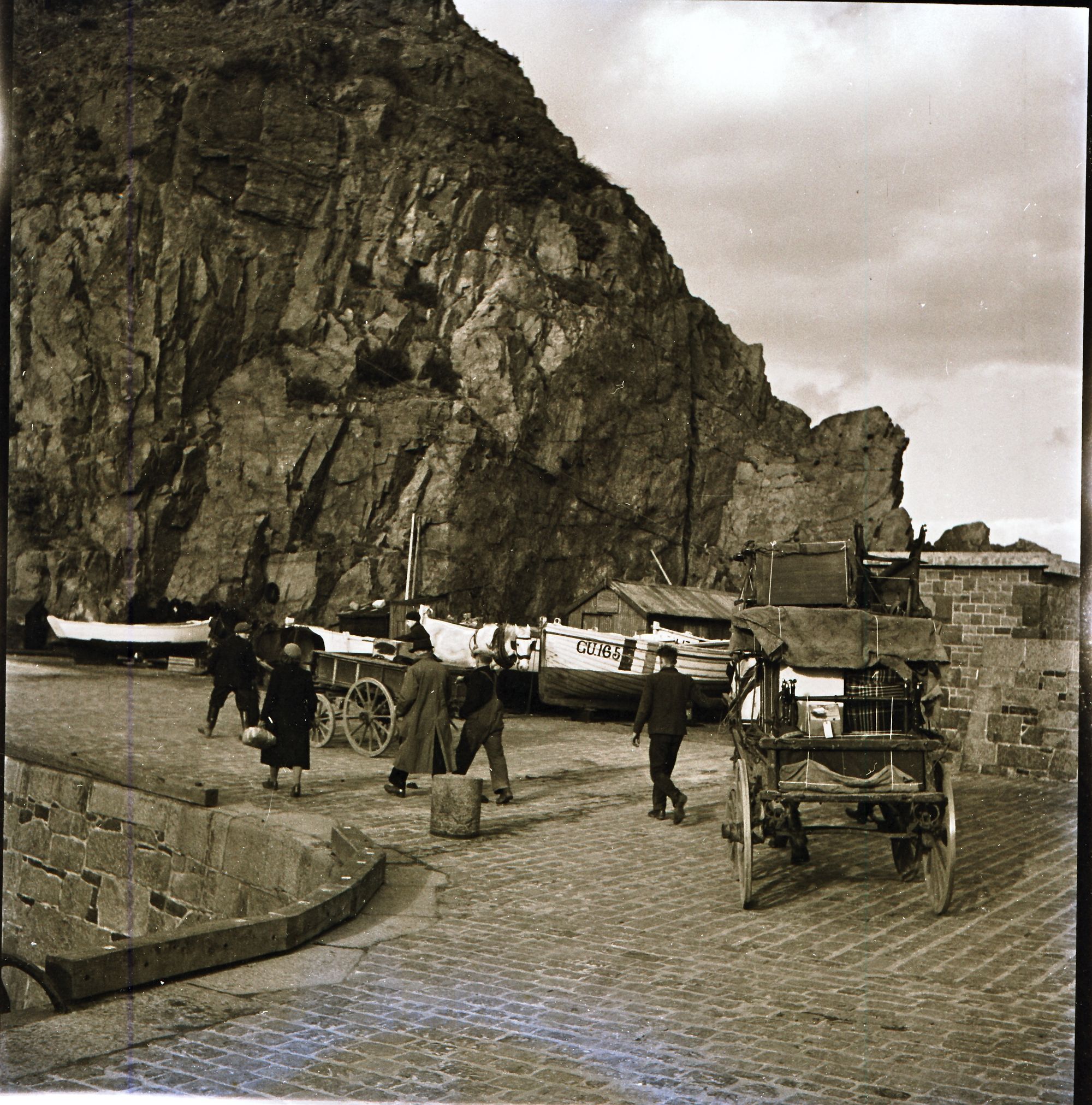Pierre Roughol traveled to the Channel Islands in 1946. He reported in Jersey and Sark, which he reached after a pit stop in Guernsey. He left detailed captions for most of his pictures of Jersey and Guernsey, which I copied verbatim below each image and translated in English. Details for Sark photos, which Pierre left mostly unexplained, were kindly provided by Christopher Beaumont, current Seigneur of Sark.