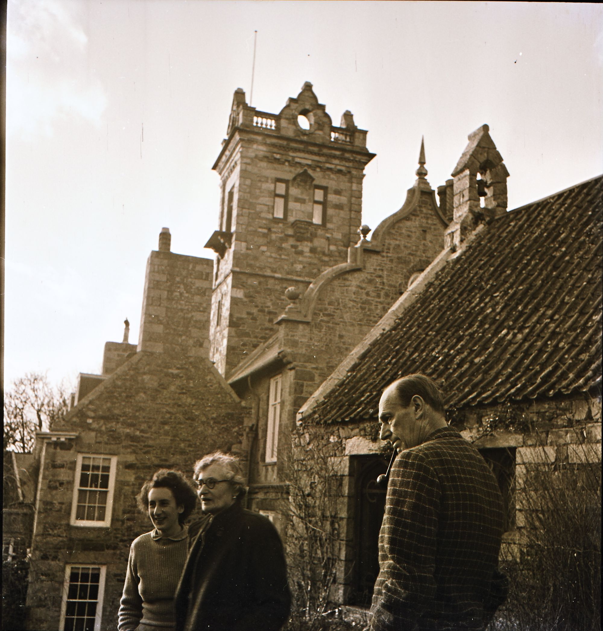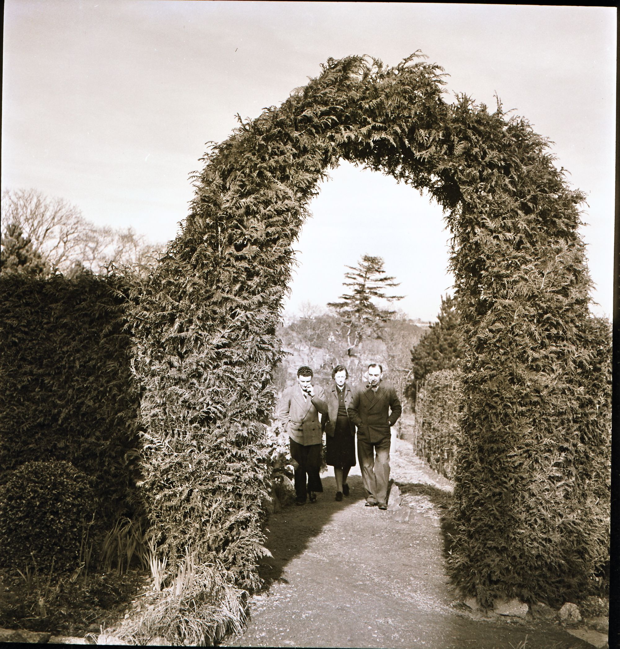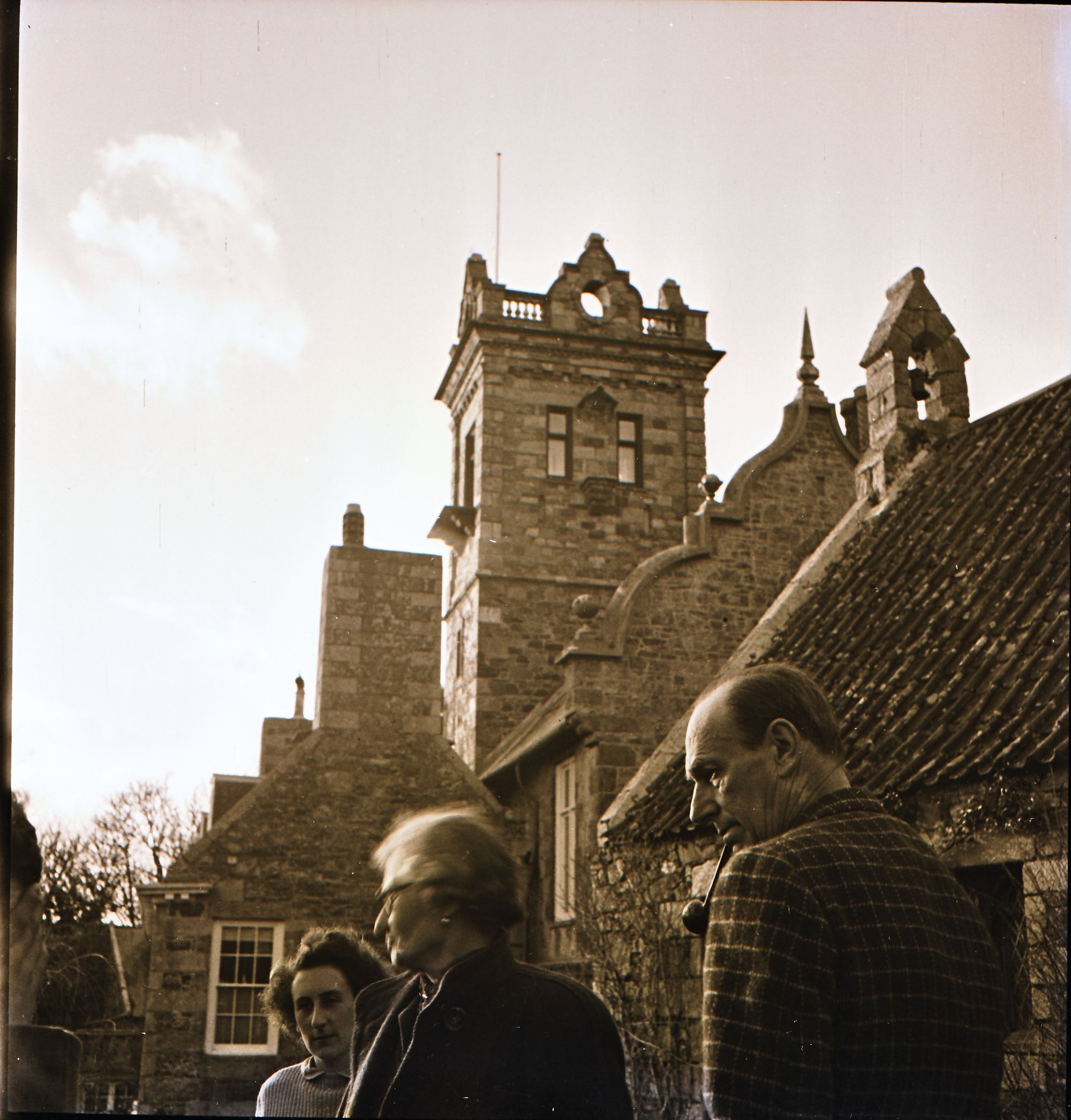 169. Back of the house on what was known as the battery. Home to a number of cannons one dating from Elizabethan times, others from the 1800s. Also a couple of German artillery pieces; Sibyl and Jehanne are looking at a small field gun, a mortar is in the foreground. This area has recently been redeveloped and is now an ornamental orchard, the cannons have been relocated to the front of the house.