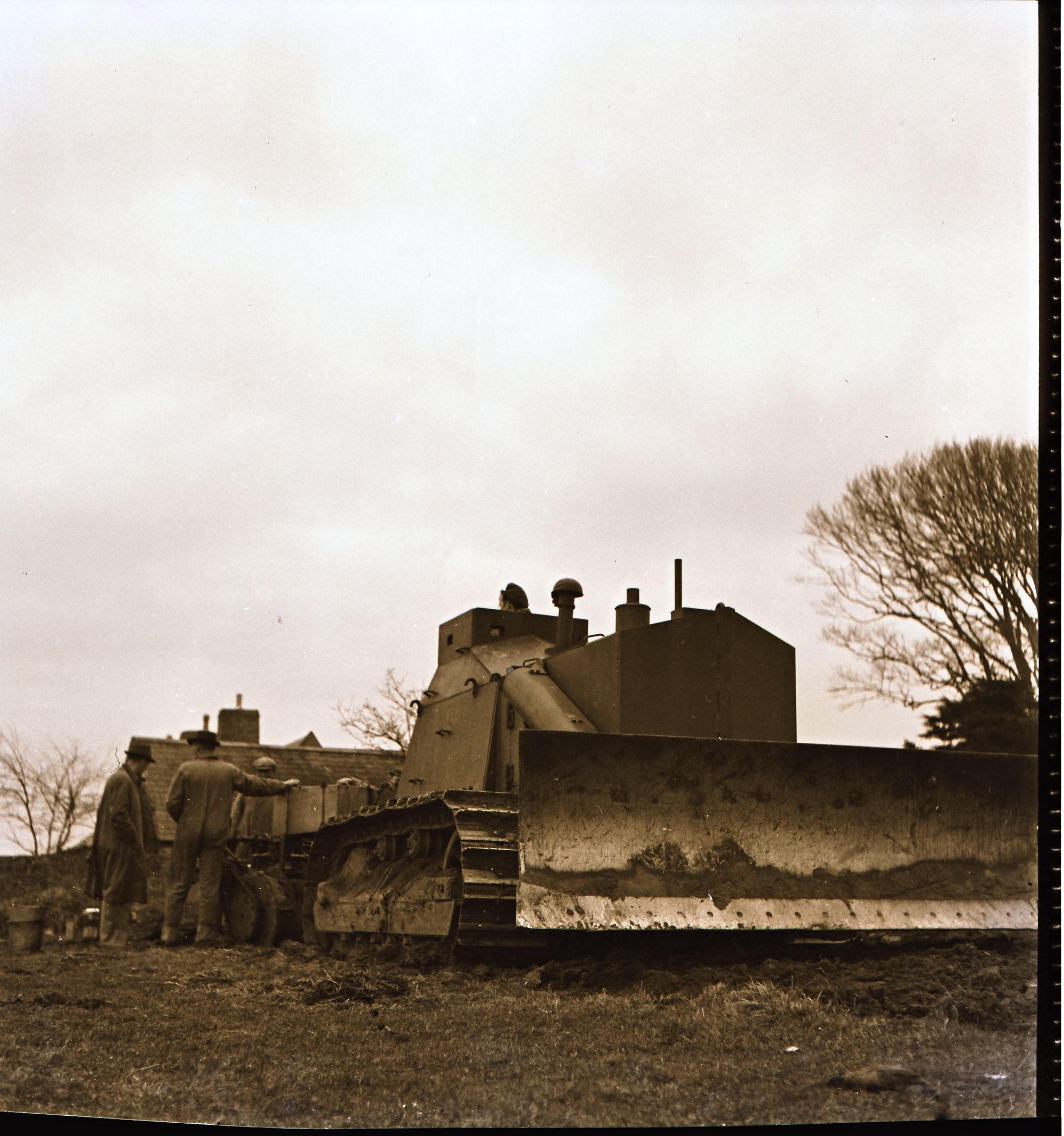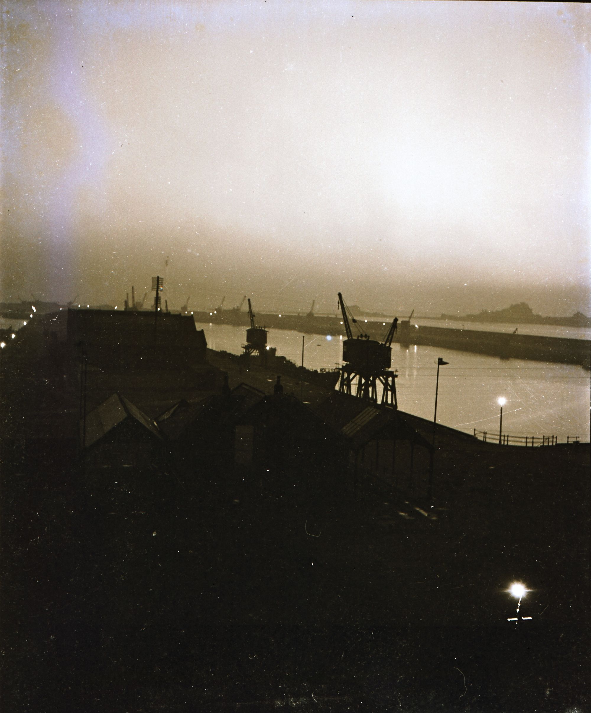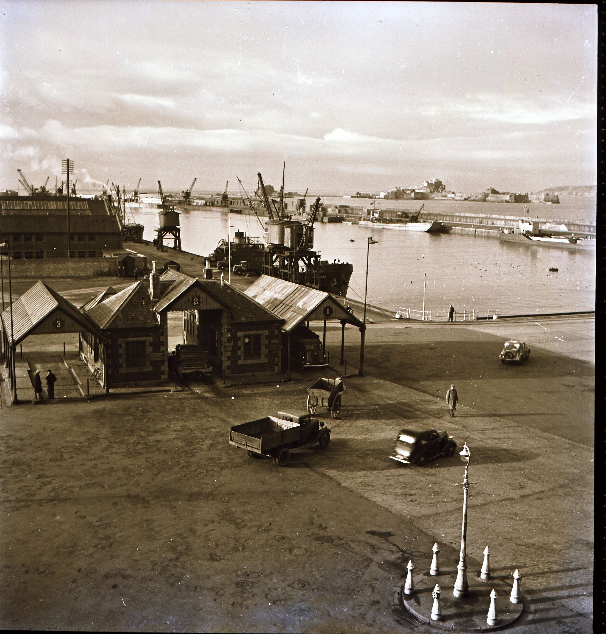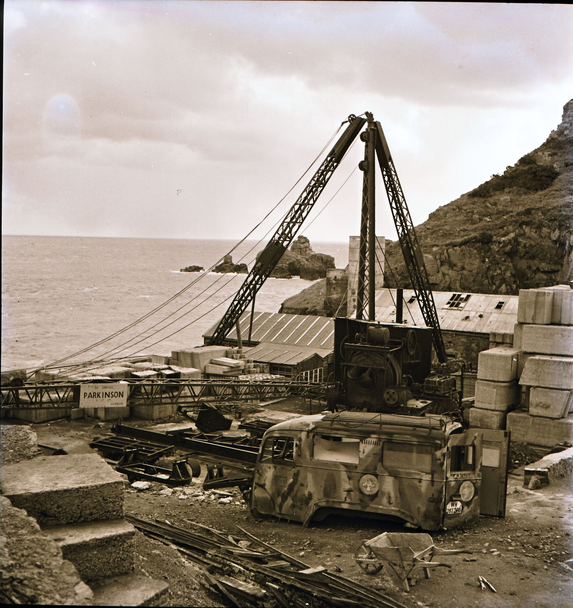 182. This is the building of the new harbour, Le Maseline. The buildings behind the crane are still there. To the left is where a new tunnel was cut and the new harbour jetty built, sections of which you can see on the right. The Creux harbour tunnel is behind and to the right of this shot. Looks like an ex-German vehicle being used as a site office!