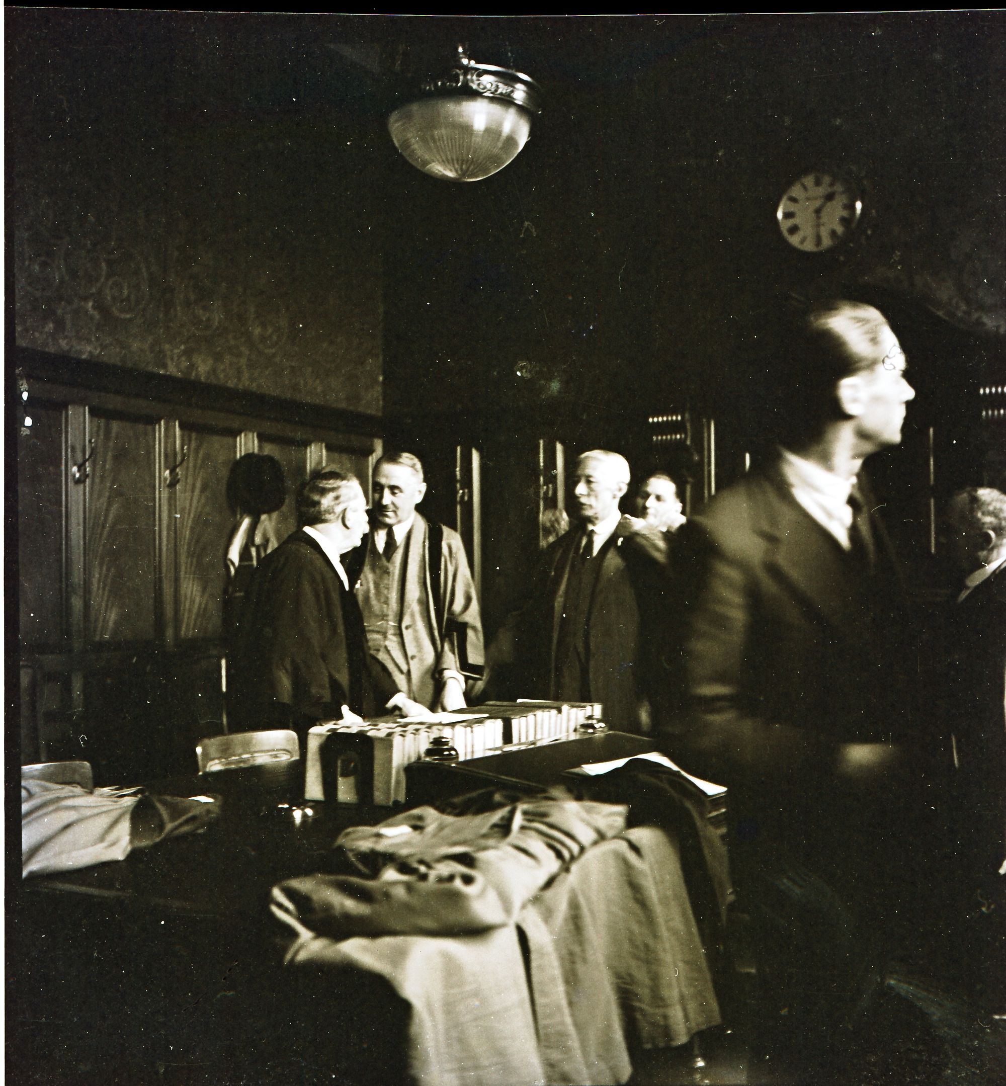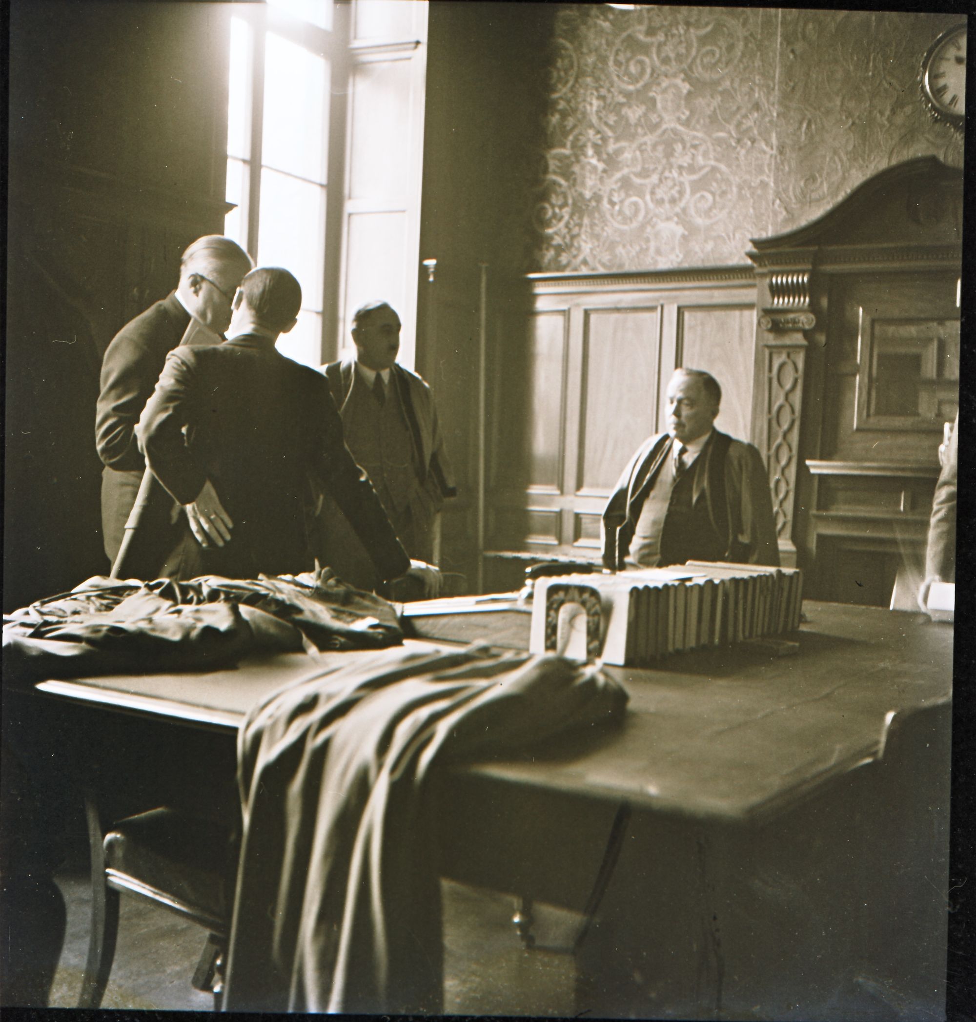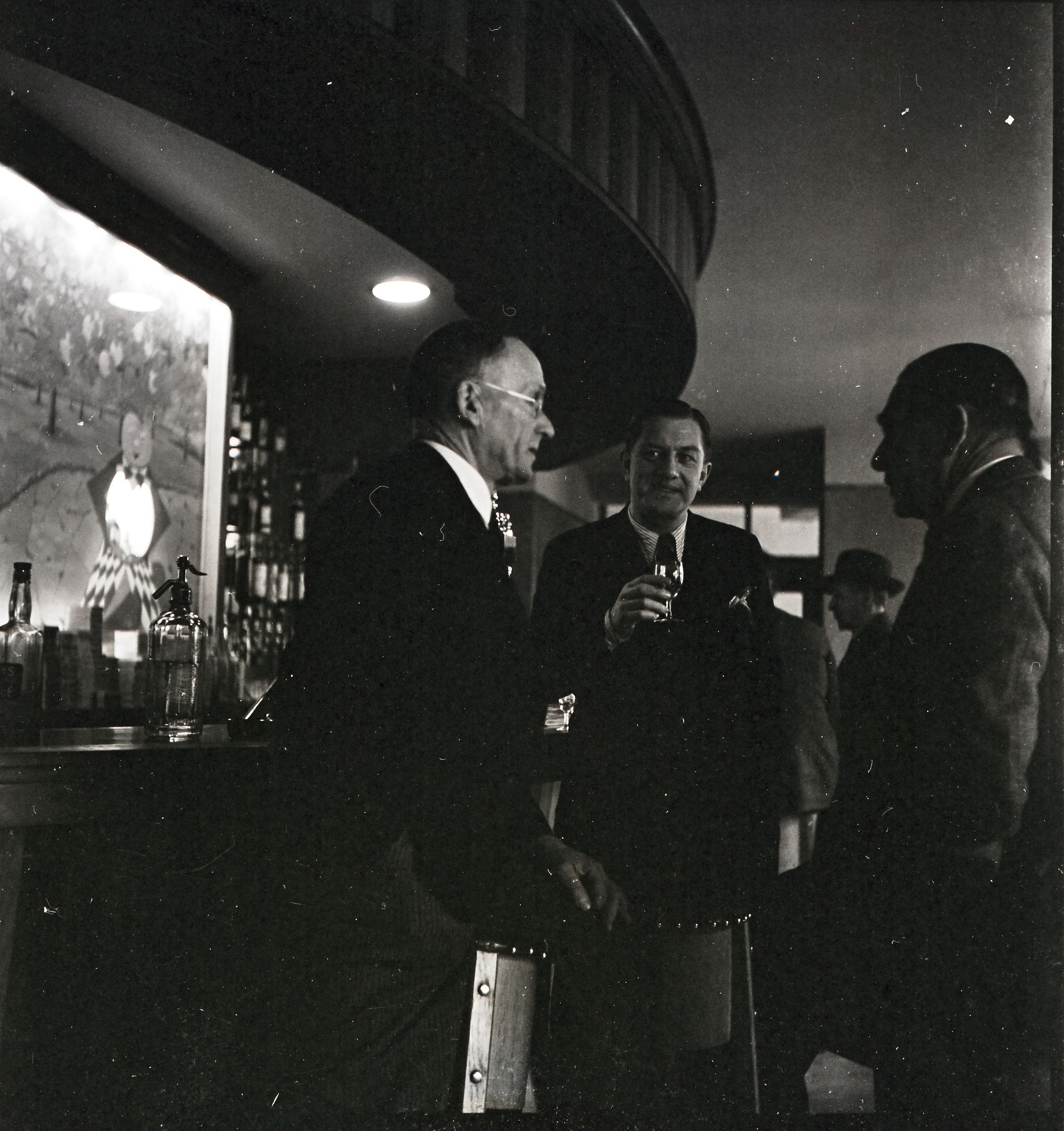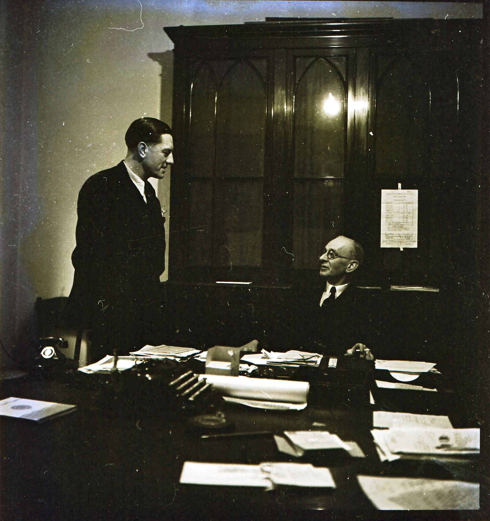 70. Mr Parker (sitting), head of the tourism board, with Mr Rumboll (sp?) of Westminster Bank. (Monsieur Parker (assis) chef de l’office de tourisme avec Monsieur Rumbol directeur de la Westminster Banque.)