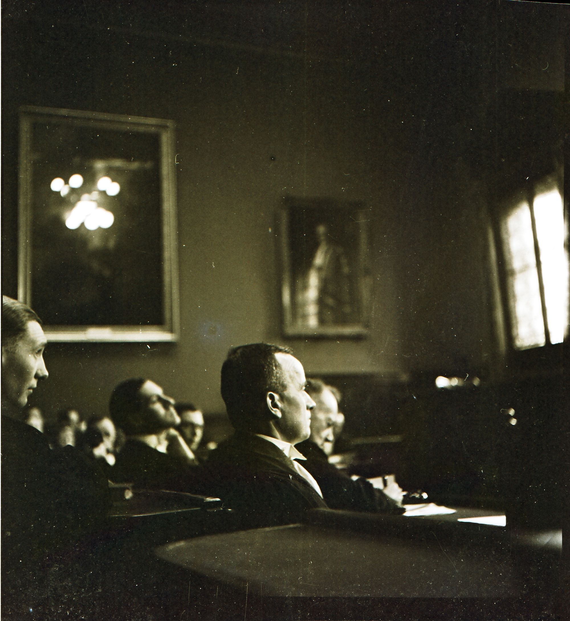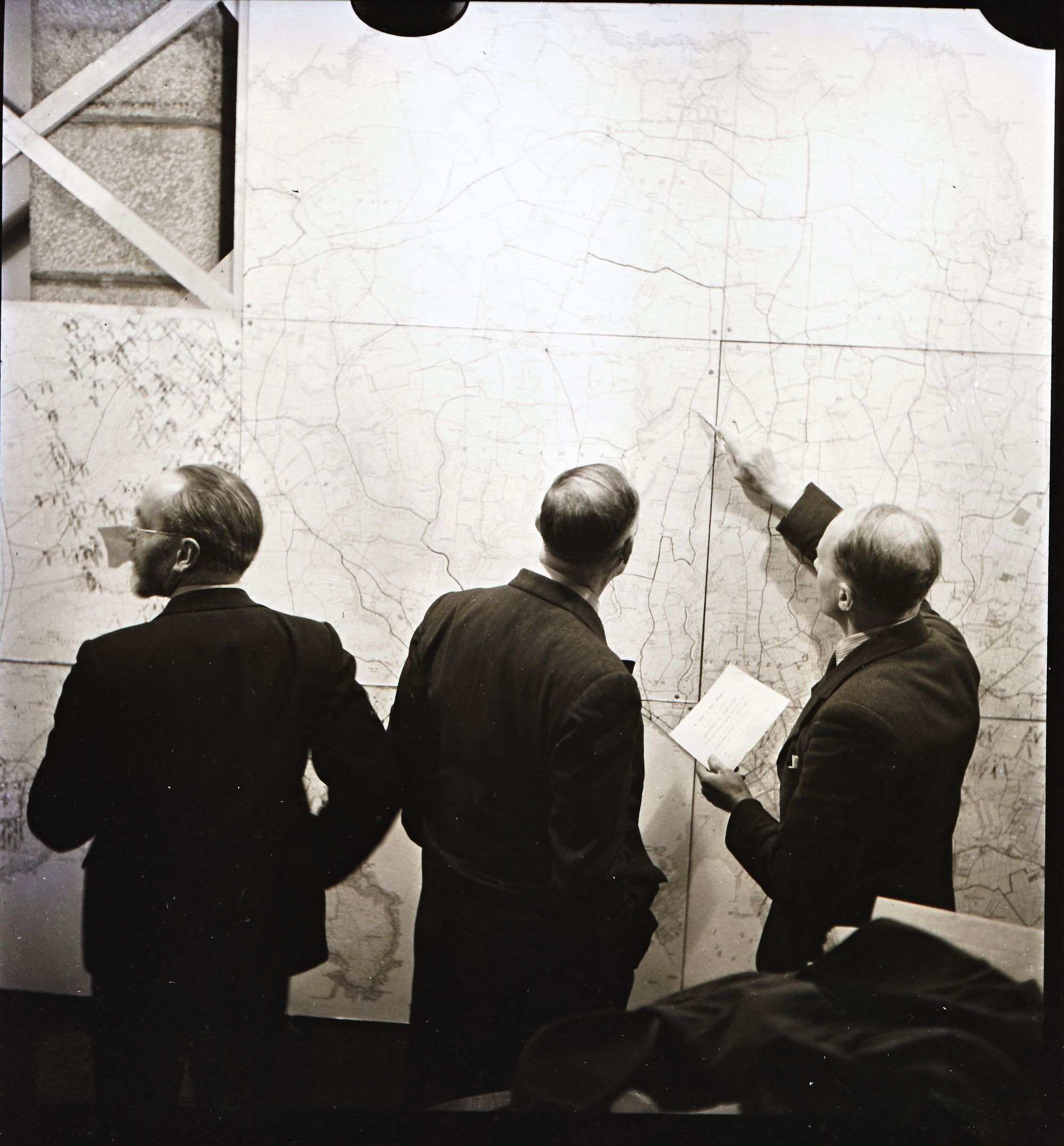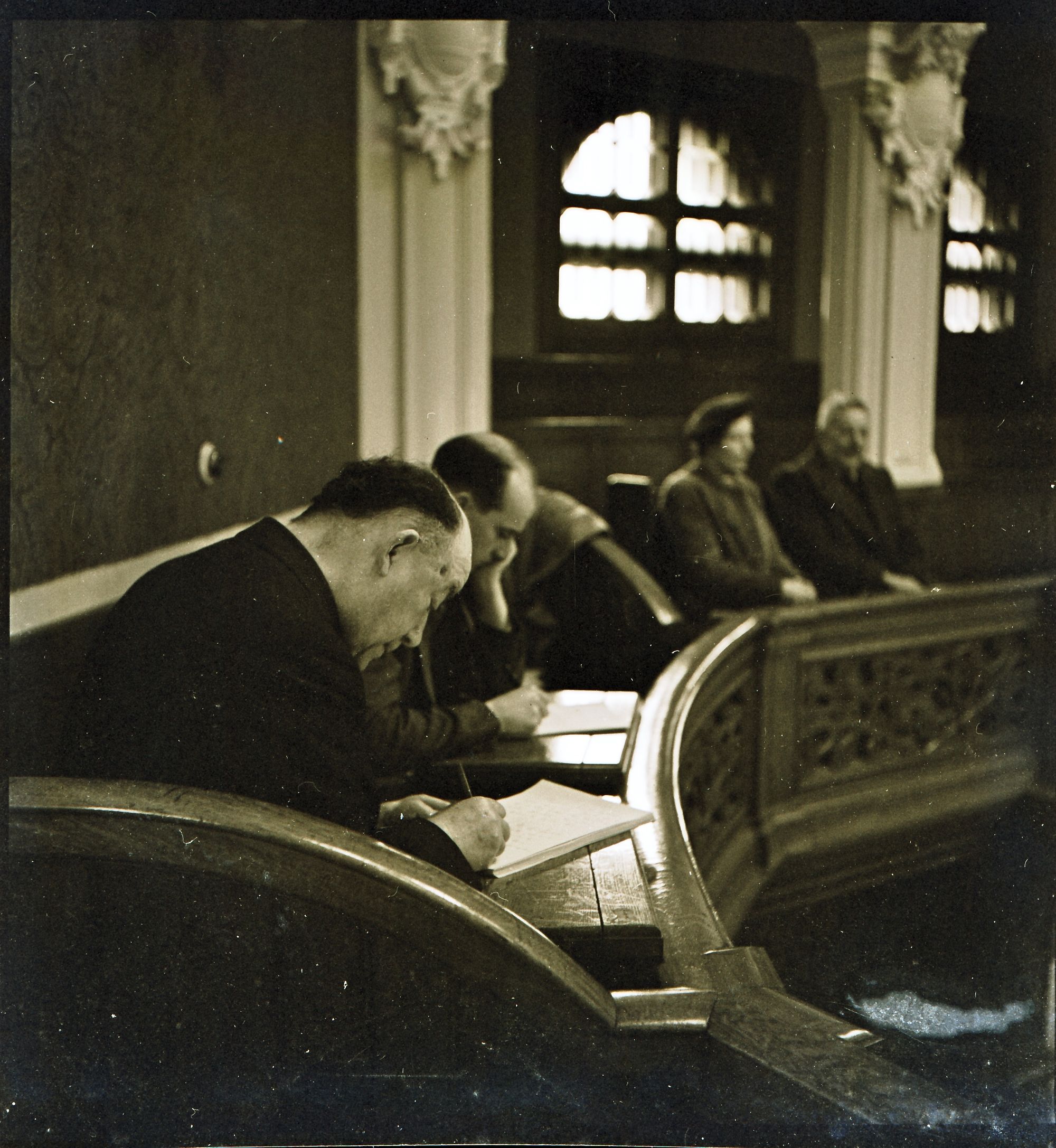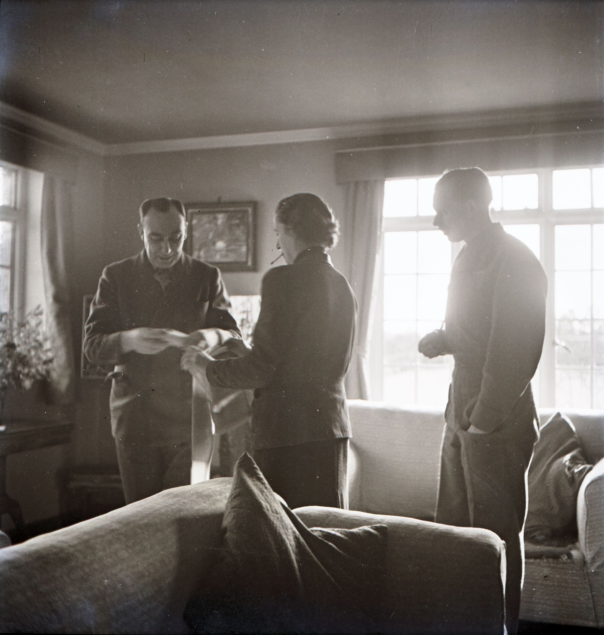 70. Mr Parker (sitting), head of the tourism board, with Mr Rumboll (sp?) of Westminster Bank. (Monsieur Parker (assis) chef de l’office de tourisme avec Monsieur Rumbol directeur de la Westminster Banque.)