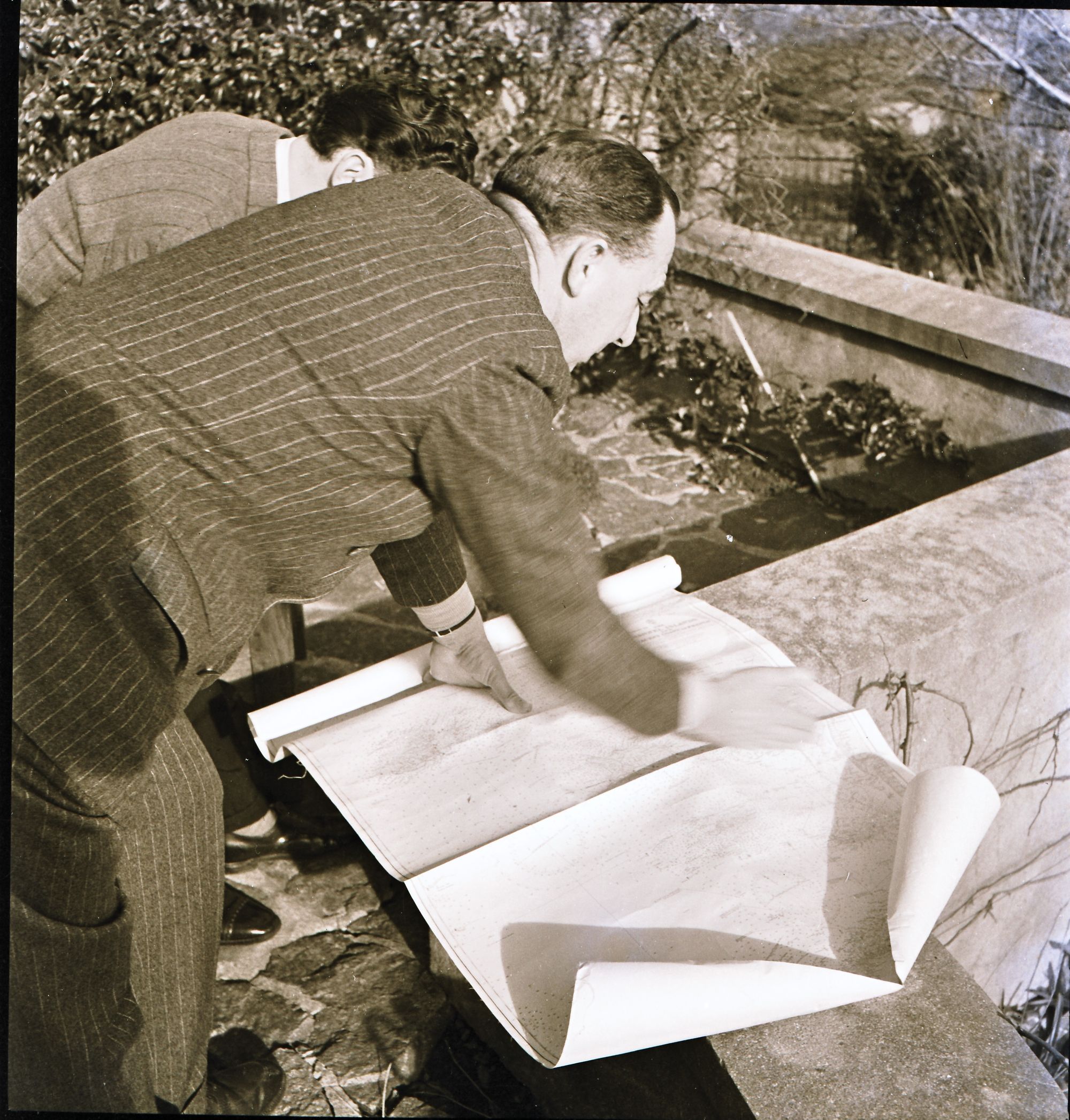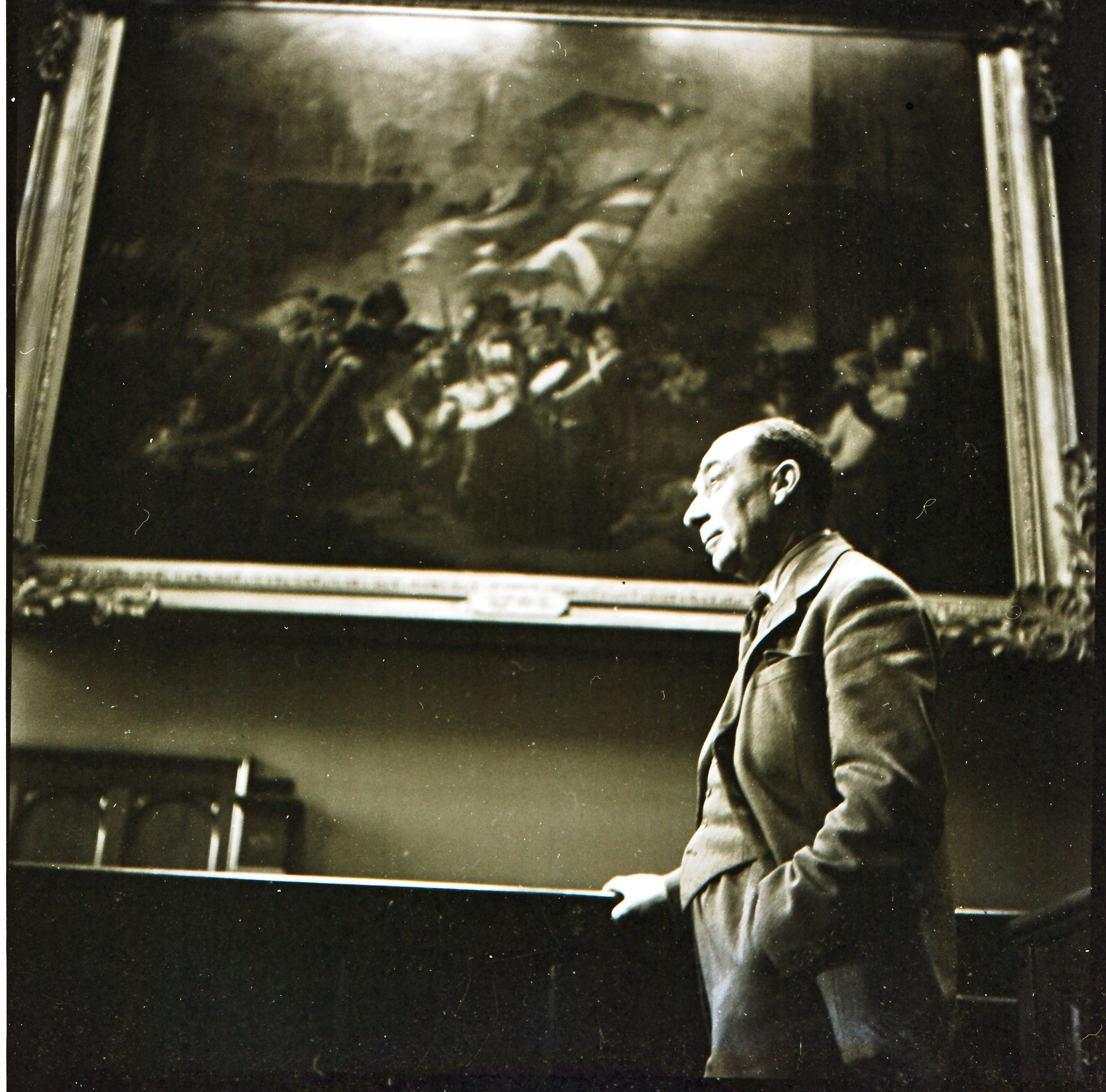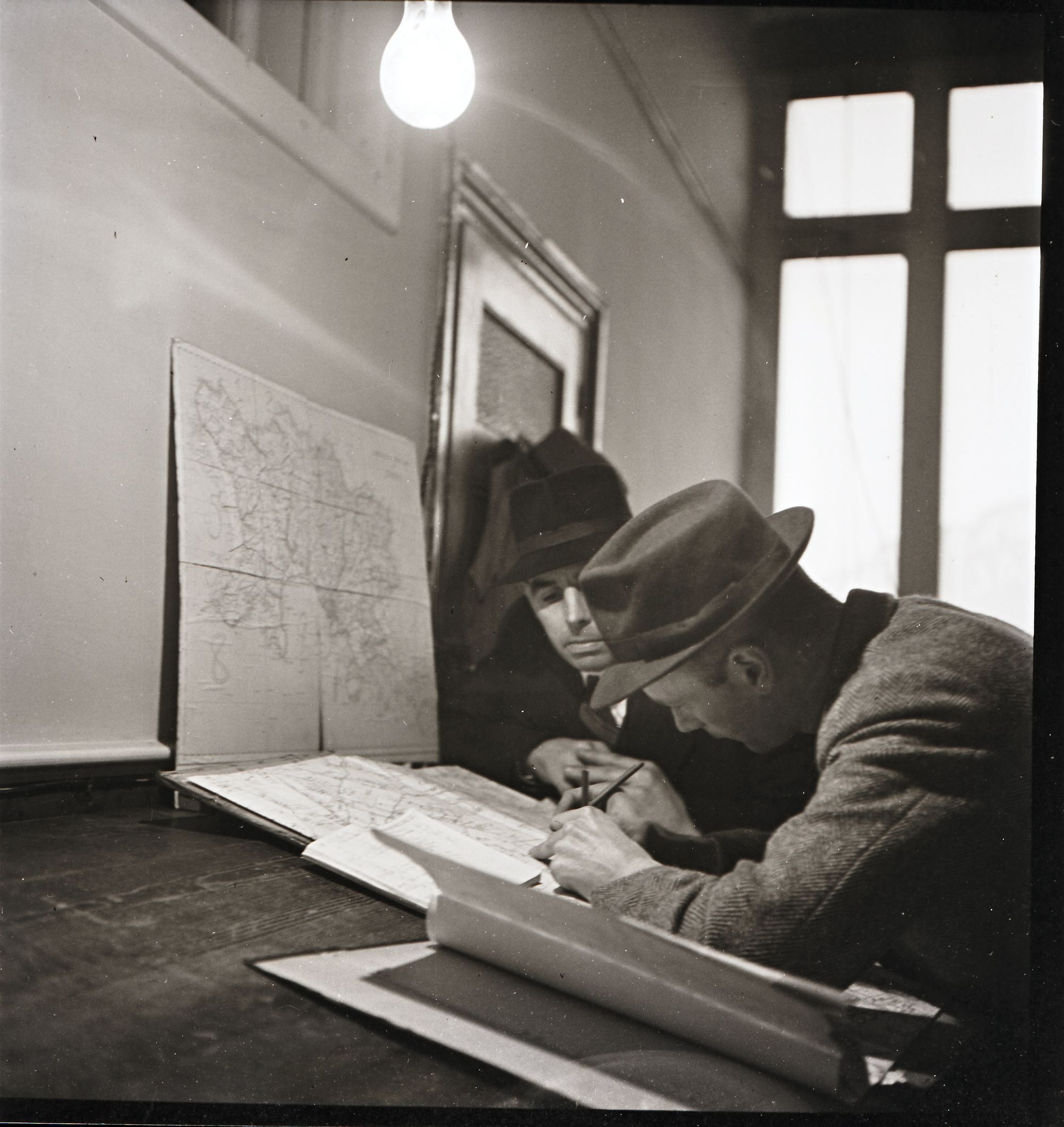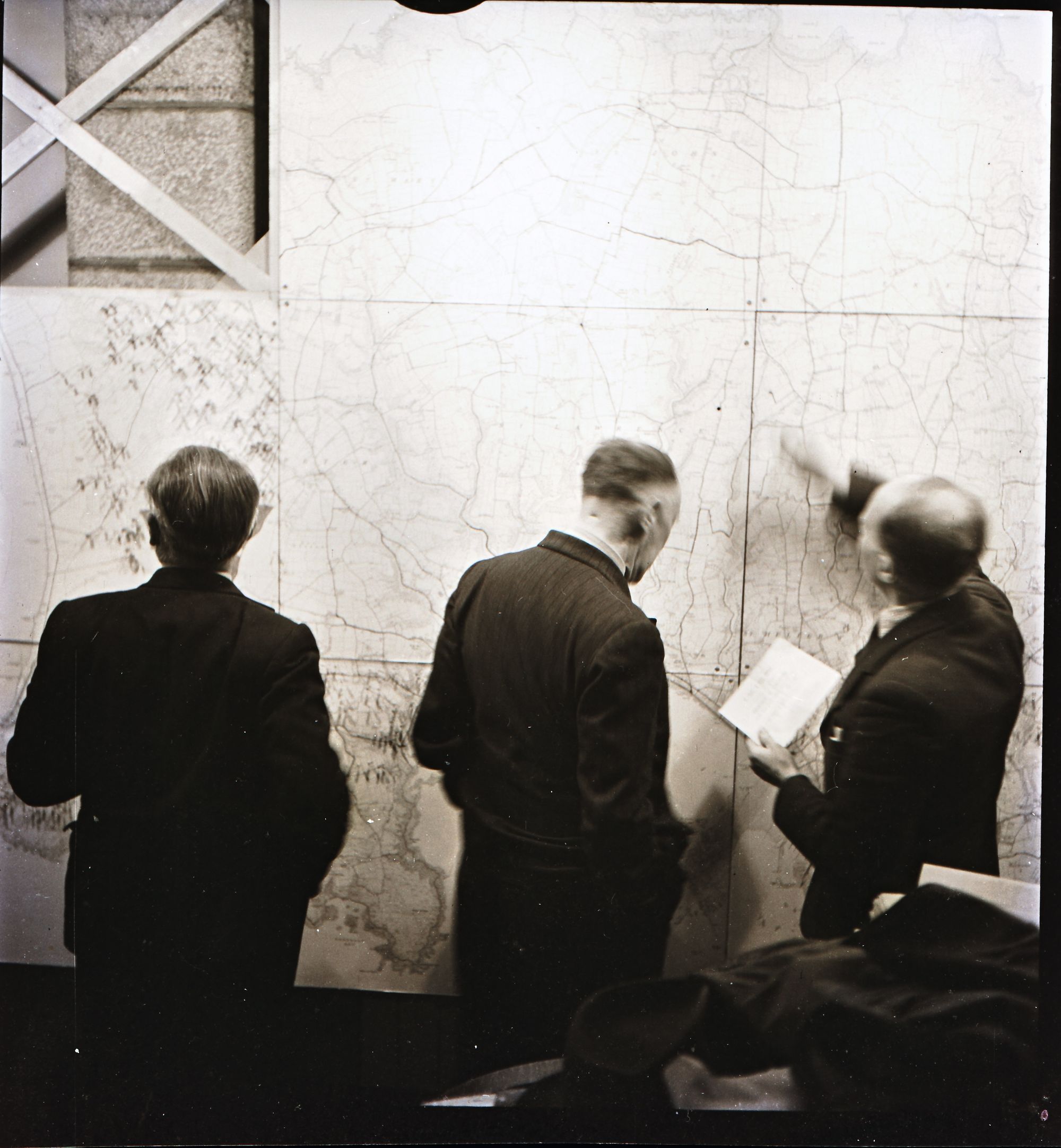 70. Mr Parker (sitting), head of the tourism board, with Mr Rumboll (sp?) of Westminster Bank. (Monsieur Parker (assis) chef de l’office de tourisme avec Monsieur Rumbol directeur de la Westminster Banque.)