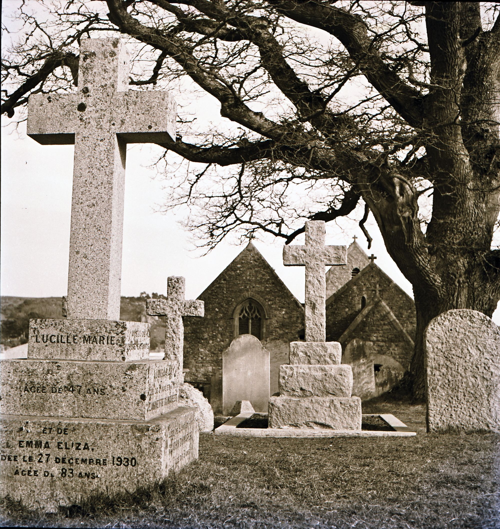1. St Brelade churchyard and cemetery. (Le cimetière dans la baie de Saint Brelade.)