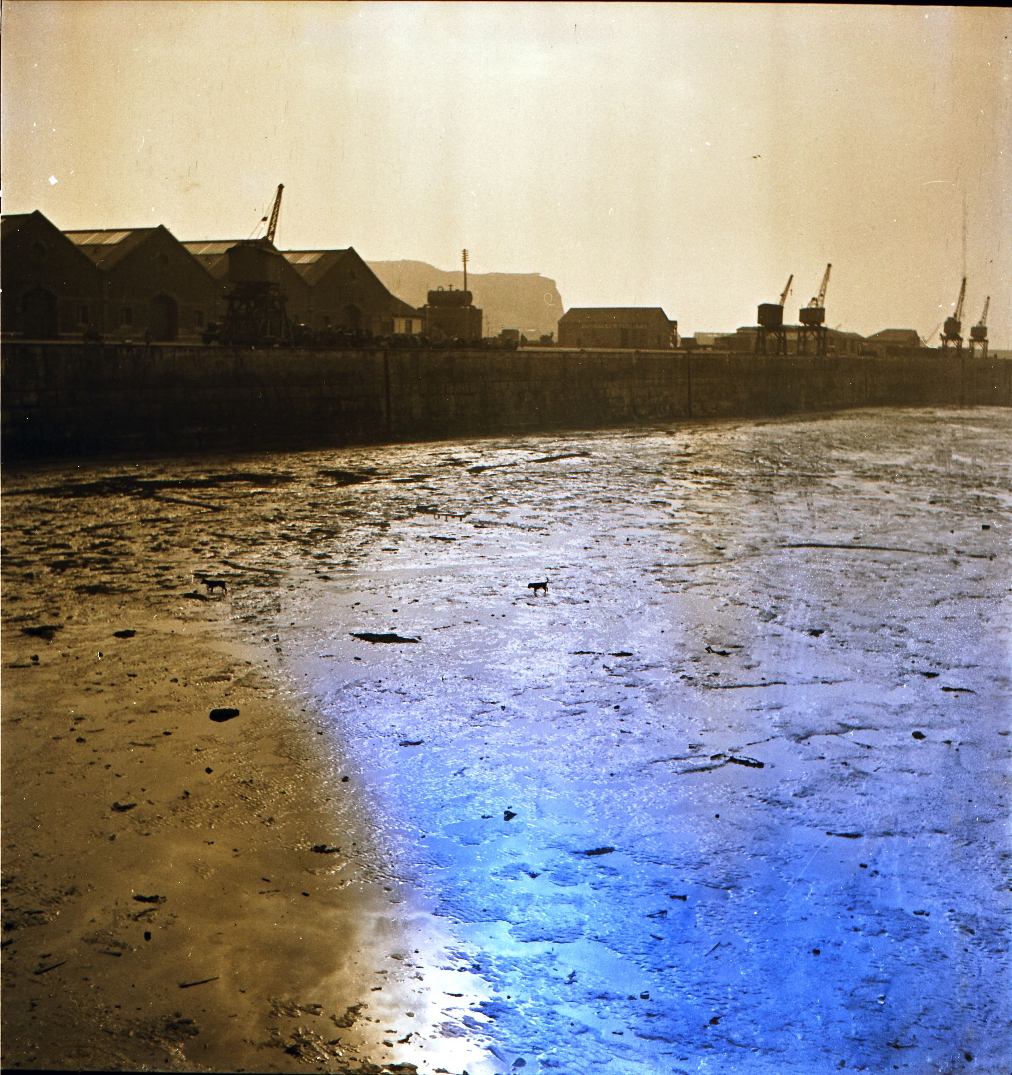 65. St Helier harbour at low tide. (Vue du port de St Hélier à marée basse.)