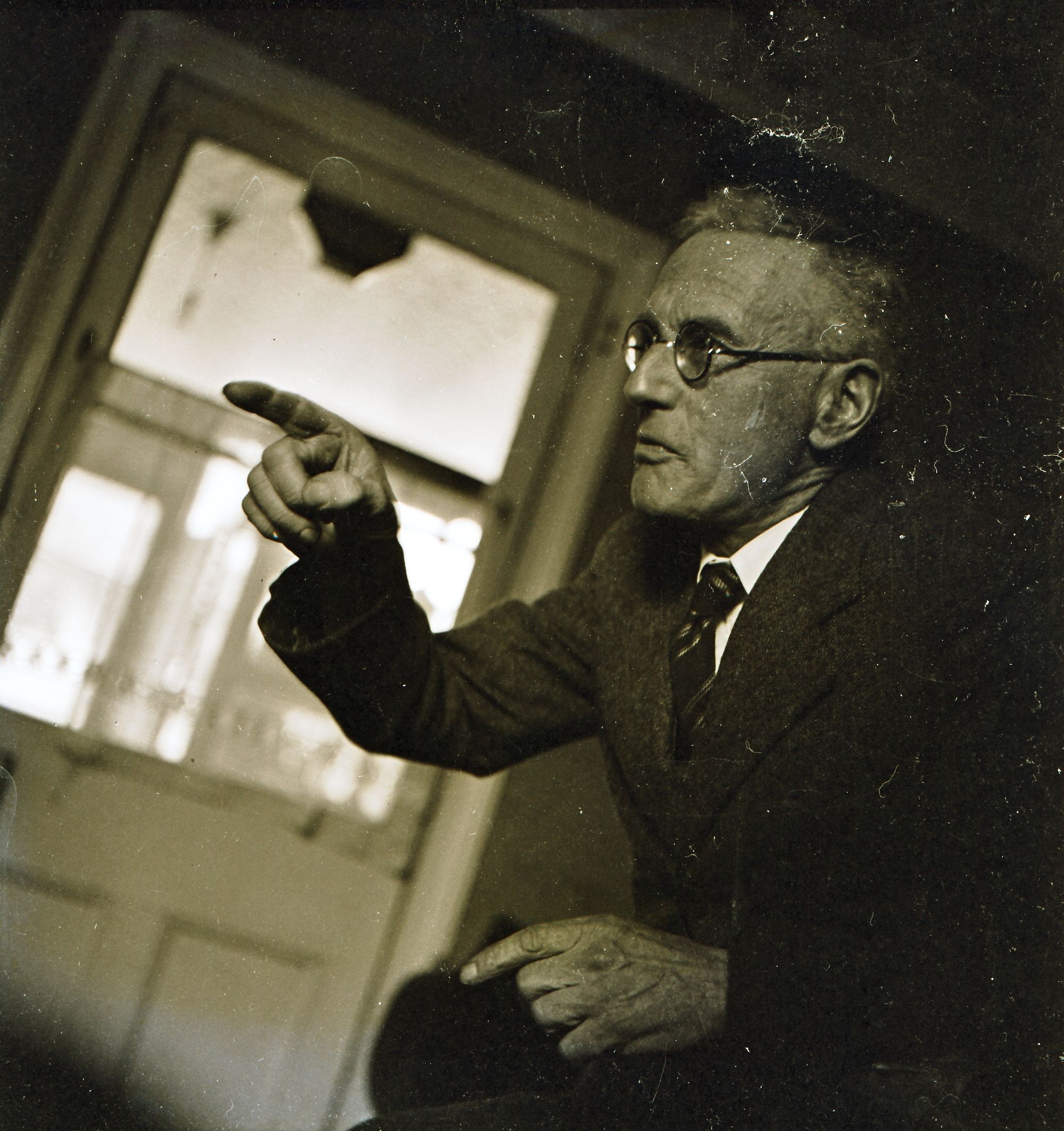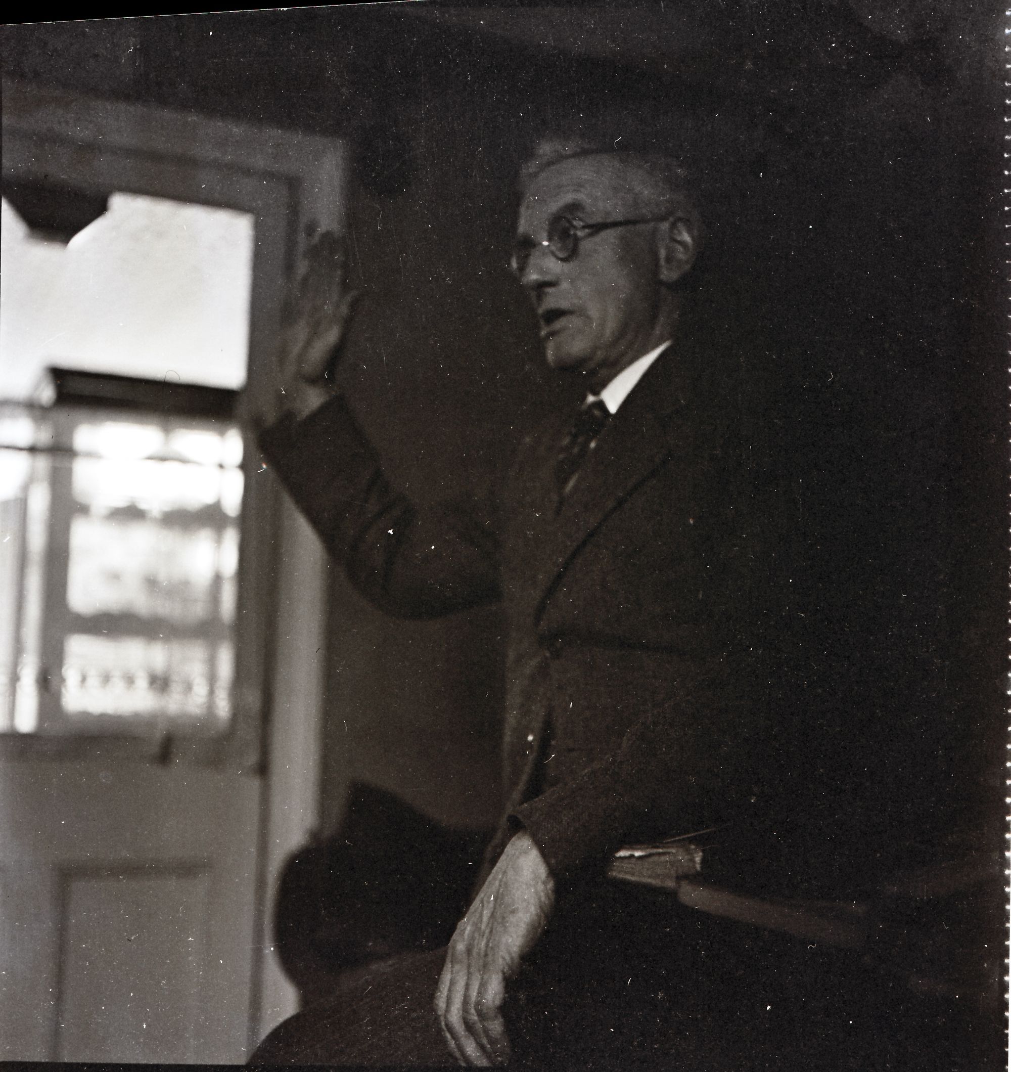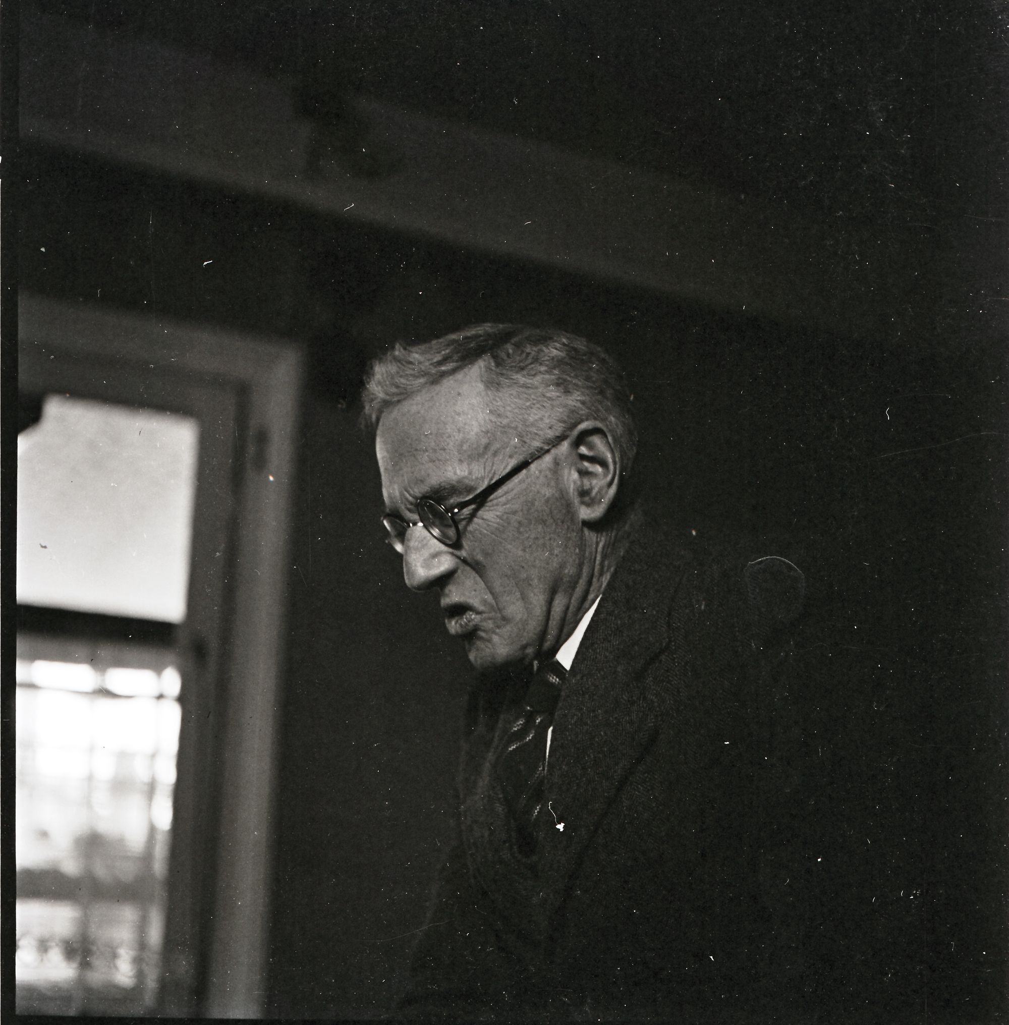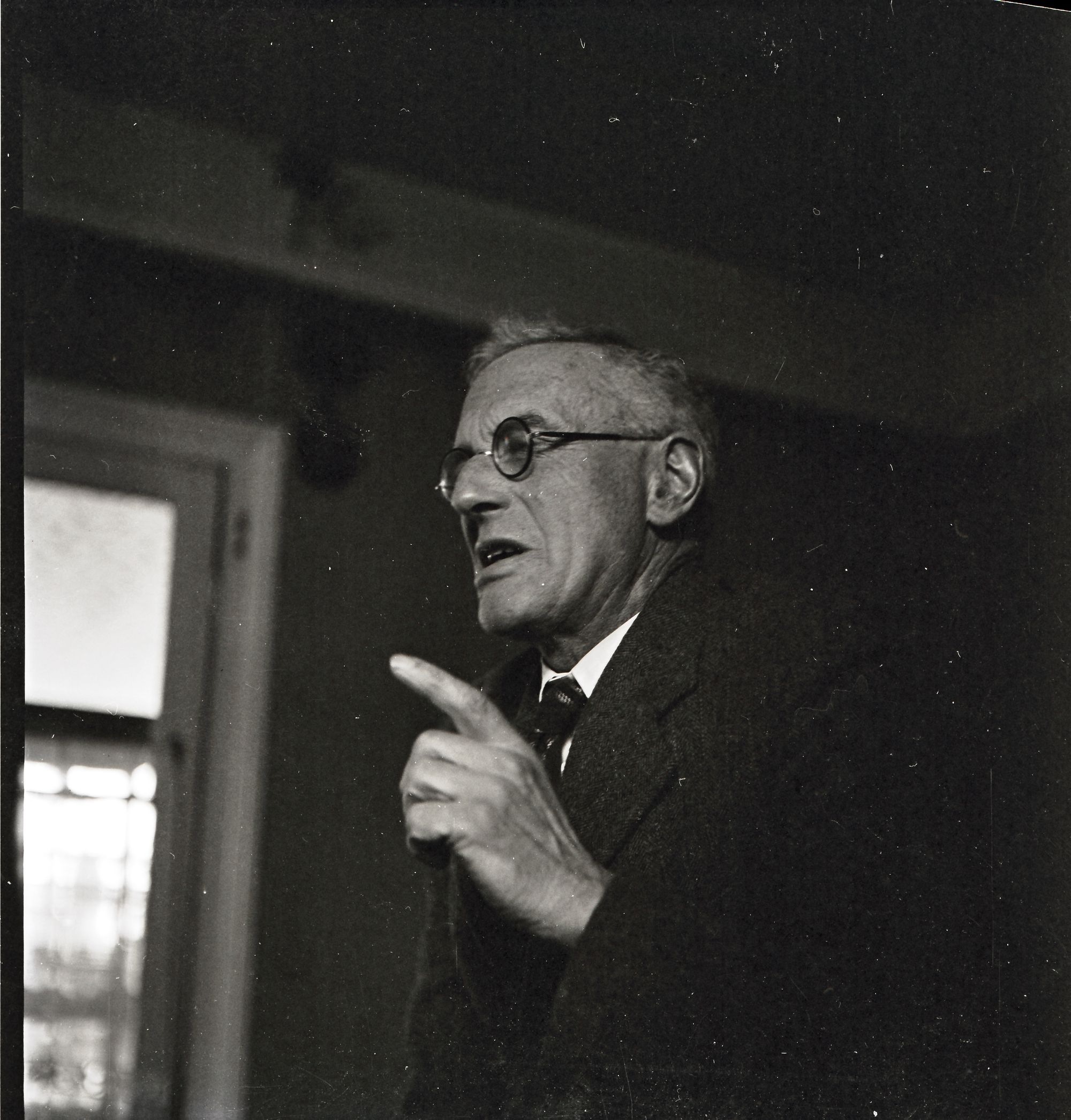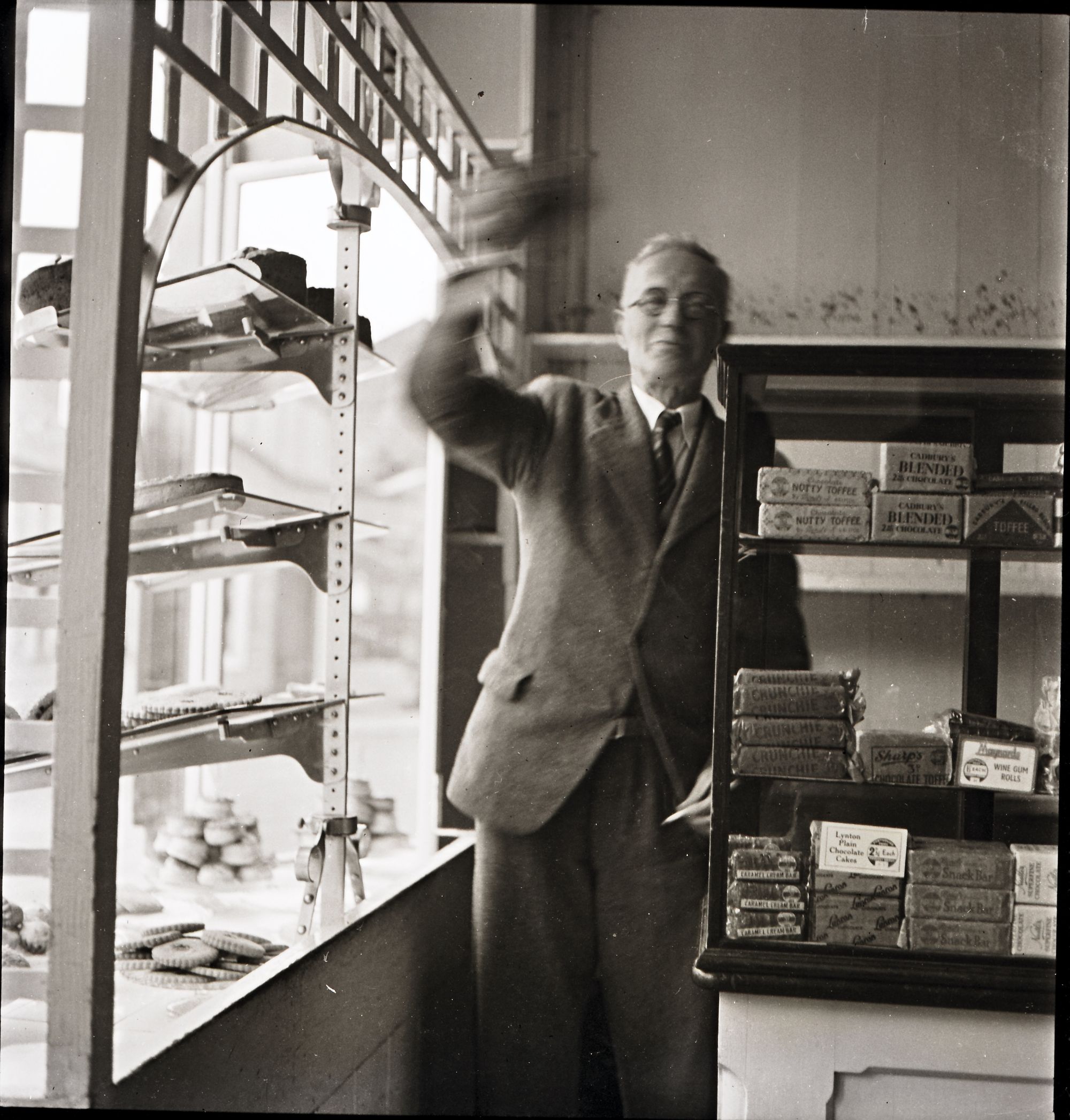 71. Mr Baal, head of the Jersey democratic party and baker, explains his platform.(Monsieur Baal, chef du parti démocrate de Jersey et boulanger, expose son programme.)