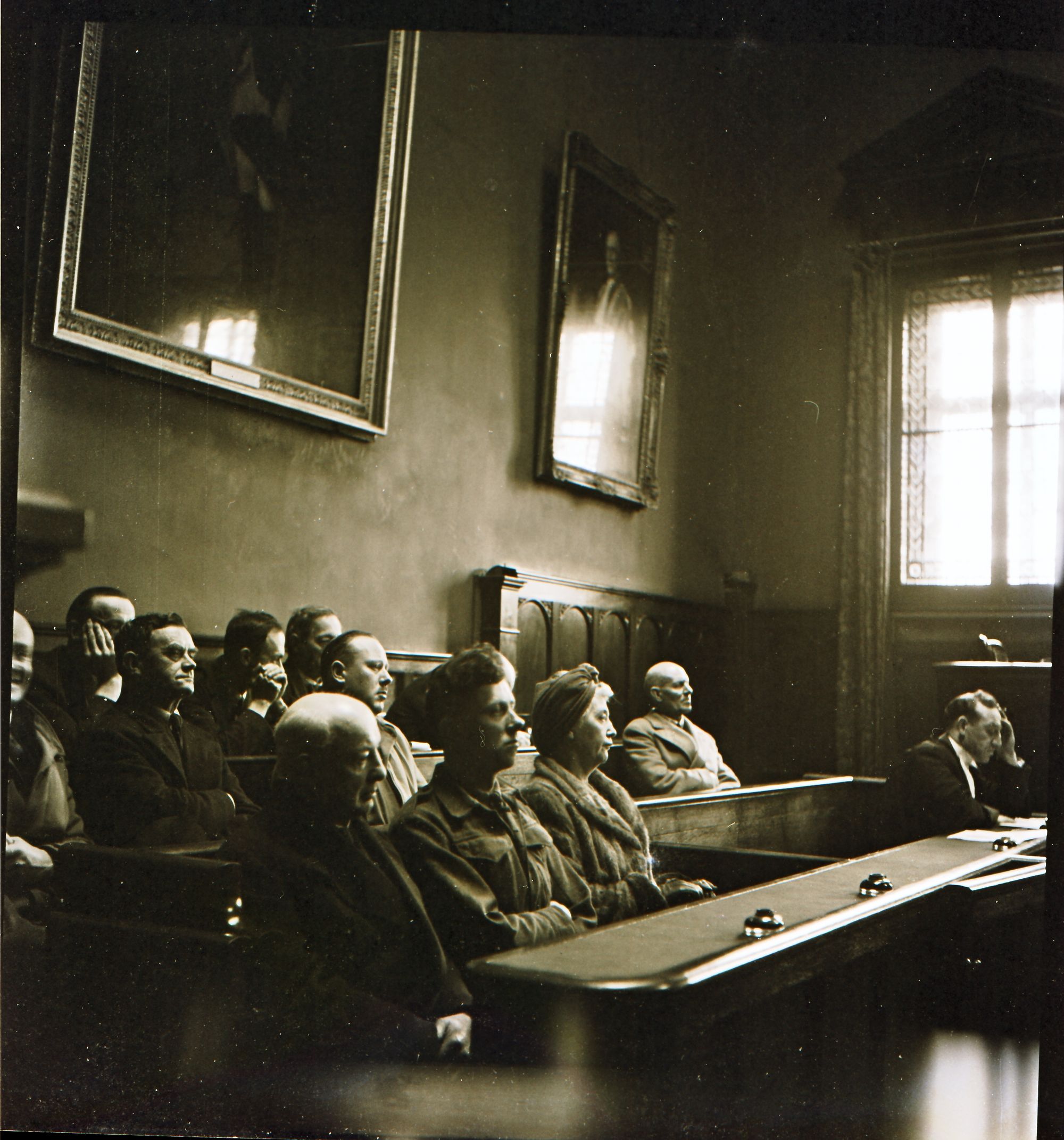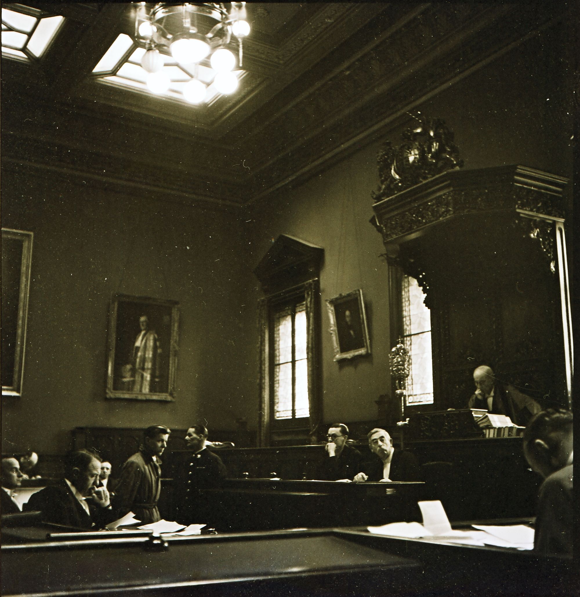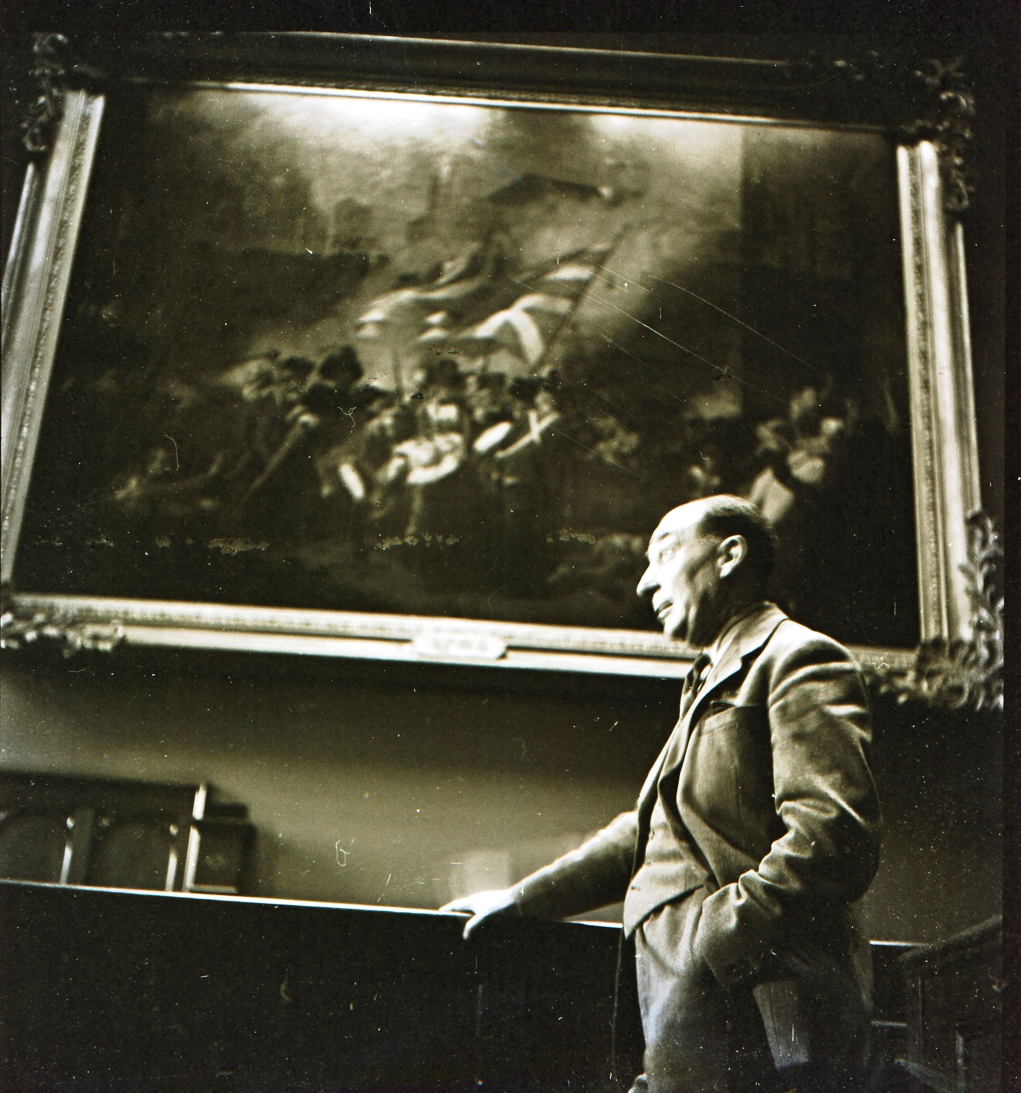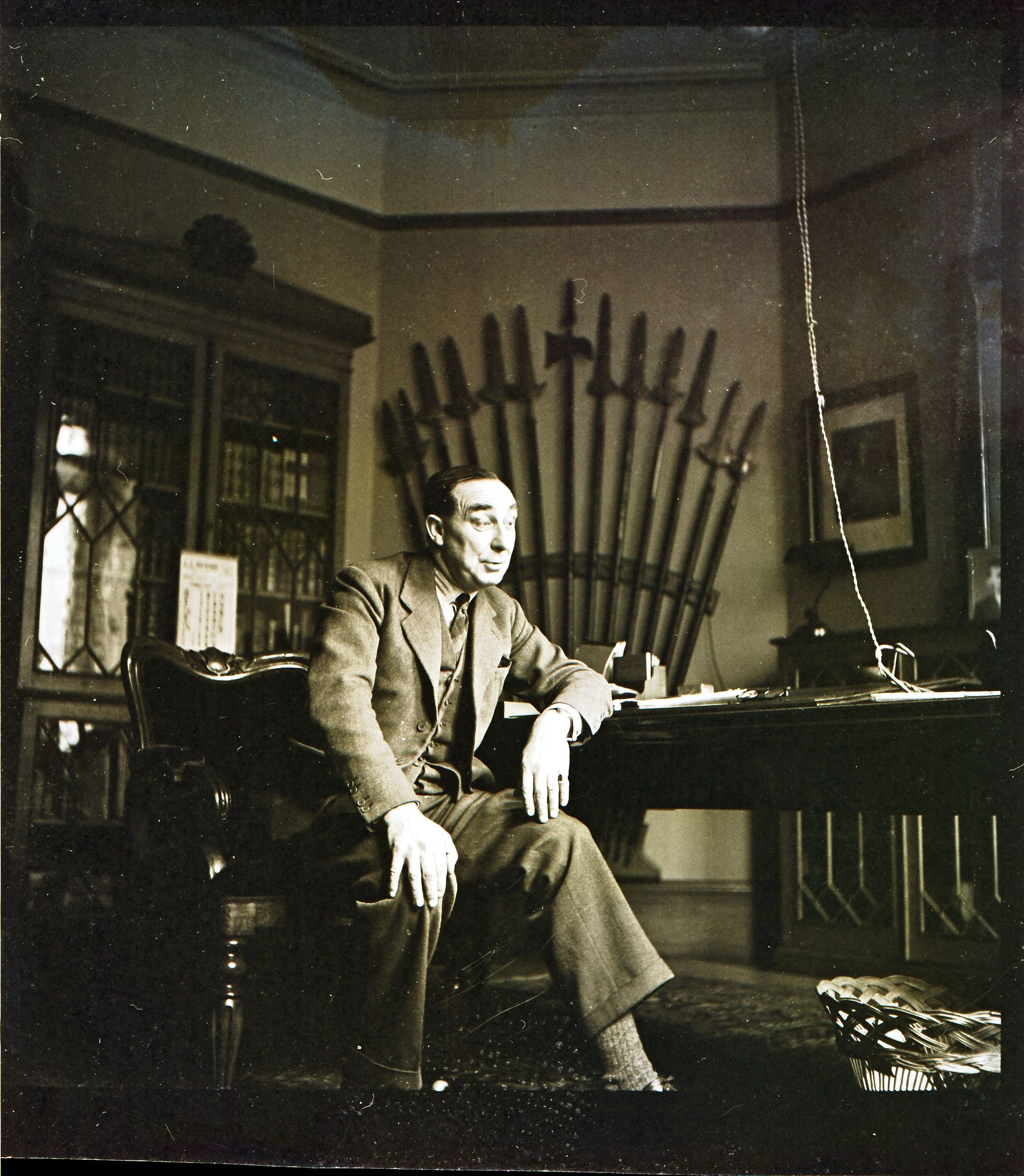 118. Mr Coutanche presides. Before him the golden royal mass dating back to 1066. Above him the three leopards flag.(Monsieur Coutanche préside. Devant lui la masse d’or royale datant de 1066. Au dessus l’étendard aux trois léopards.)
