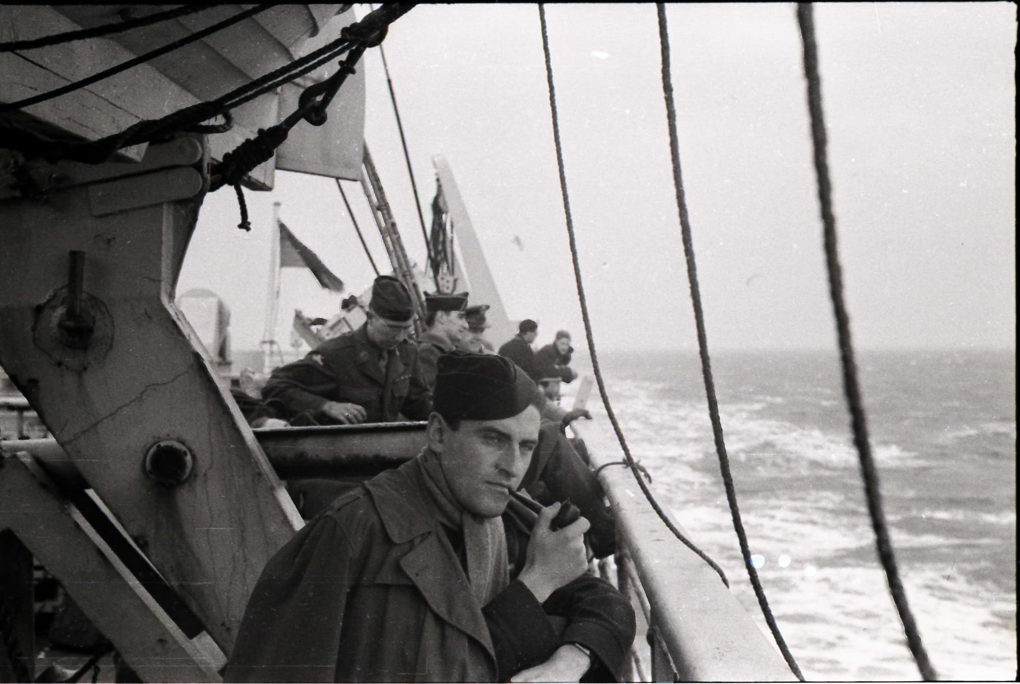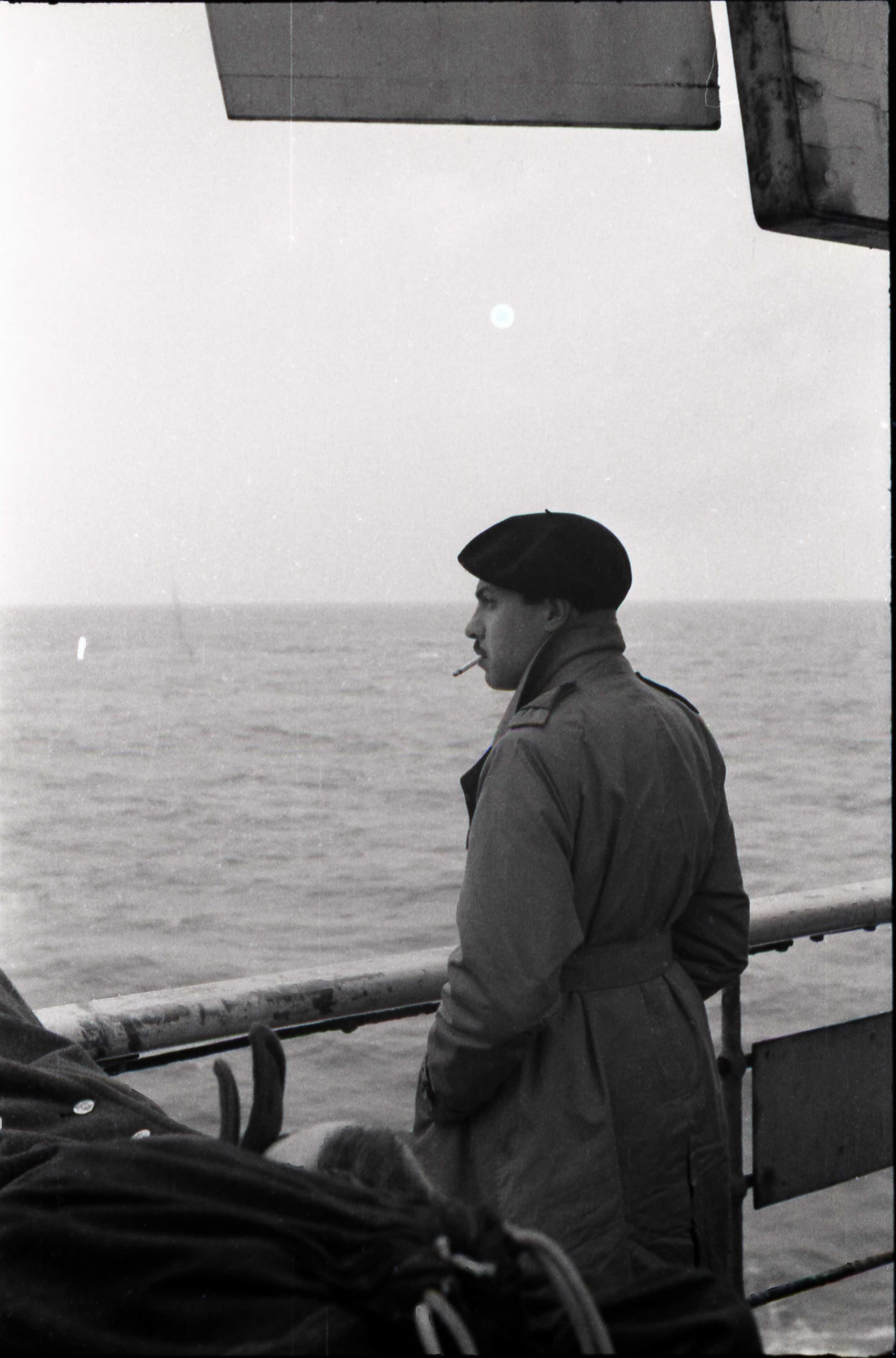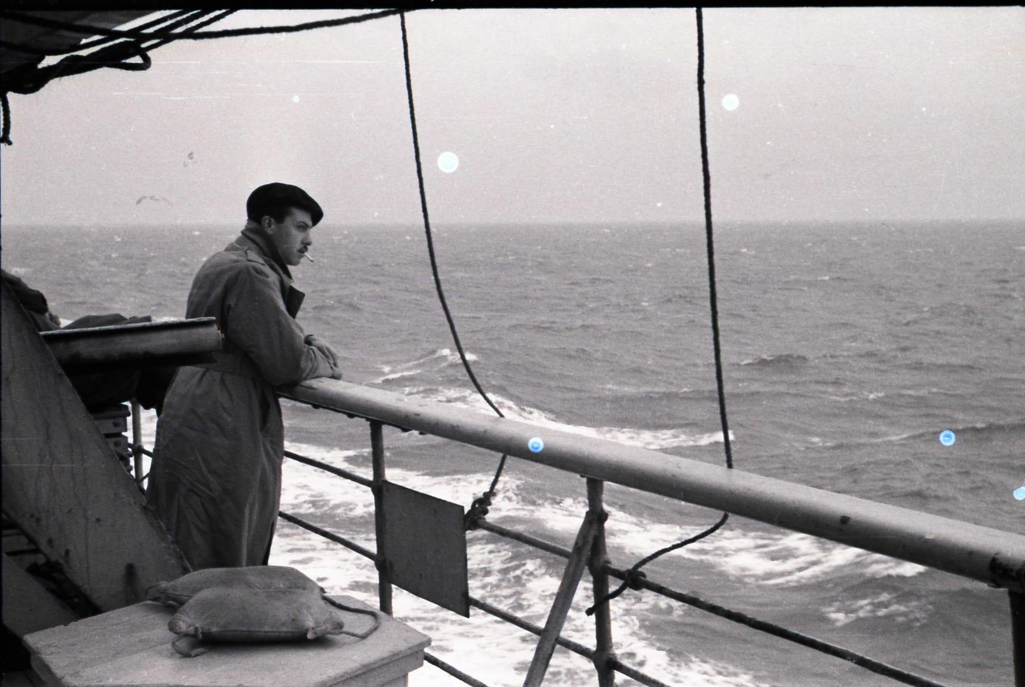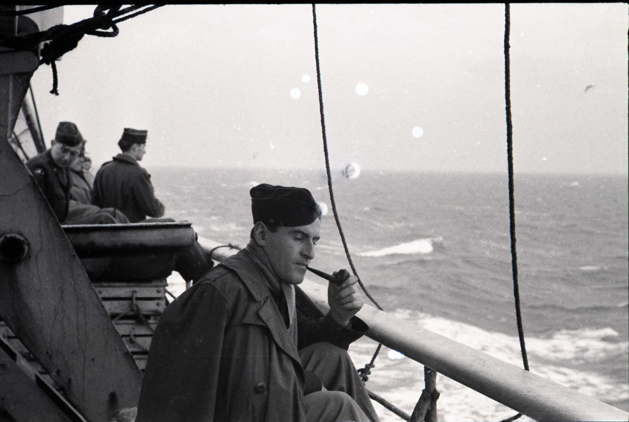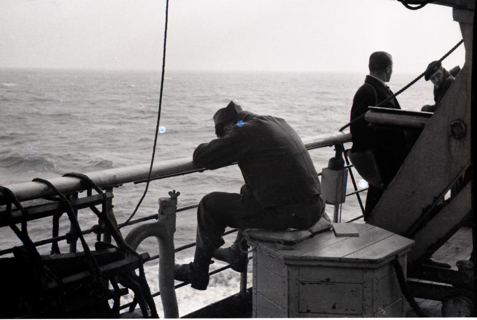 Pierre Roughol onboard a ship, most likely sailing to the Channel islands, in this undated photograph.